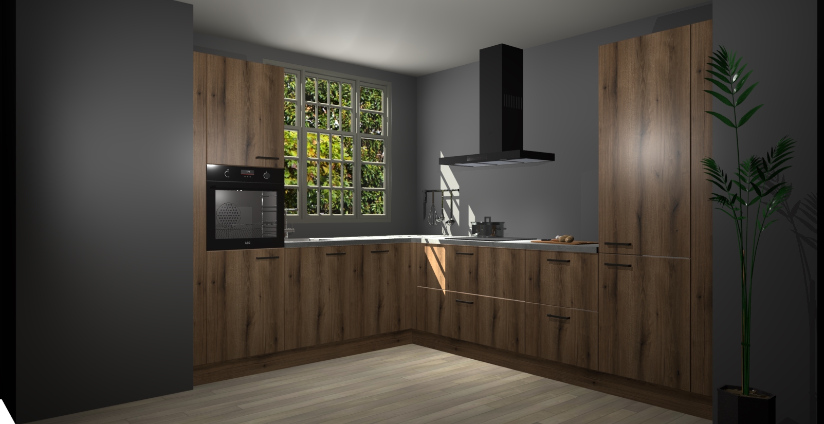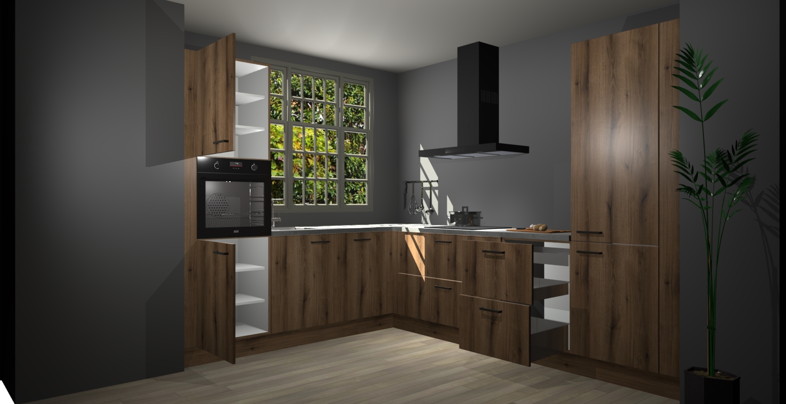 Met een modern, tijdloos design en ruime opslagruimte, zult u zich in no-time thuis voelen in uw nieuwe keuken. Uw leven wordt eenvoudiger met de soft-close deuren die voor het ultieme stille comfort zorgen - geen geluid dat u stoort terwijl u kookt. Ook is de keuken voorzien van 5 ingebouwde apparaten: een oven, inductie kookplaat, afzuigkap, vaatwasser en koelkast. Deze kunnen gemakkelijk na bestelling worden bijgewerkt naar AEG - waardoor uw luxe ervaring compleet is.
