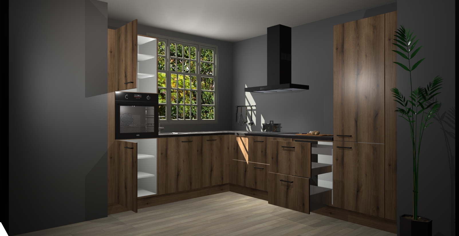 Met een modern, tijdloos design en ruime opslagruimte, zult u zich in no-time thuis voelen in uw nieuwe keuken. Uw leven wordt eenvoudiger met de soft-close deuren die voor het ultieme stille comfort zorgen - geen geluid dat u stoort terwijl u kookt. Ook is de keuken voorzien van 5 ingebouwde apparaten: een oven, inductie kookplaat, afzuigkap, vaatwasser en koelkast. Deze kunnen gemakkelijk na bestelling worden bijgewerkt naar AEG - waardoor uw luxe ervaring compleet is.