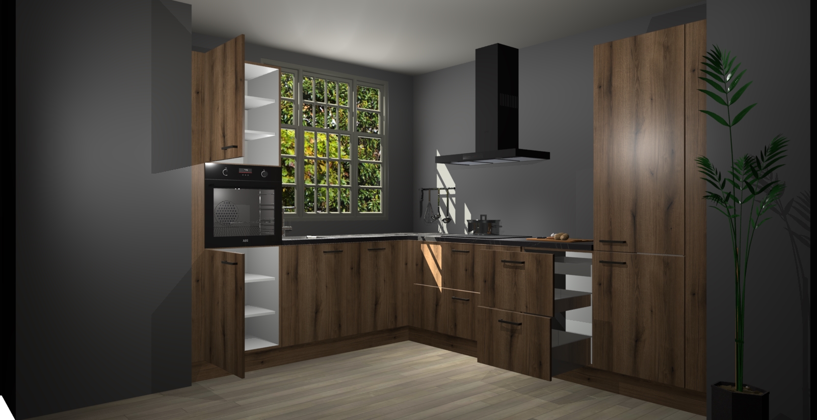 Met een modern, tijdloos design en ruime opslagruimte, zult u zich in no-time thuis voelen in uw nieuwe keuken. Uw leven wordt eenvoudiger met de soft-close deuren die voor het ultieme stille comfort zorgen - geen geluid dat u stoort terwijl u kookt. Ook is de keuken voorzien van 5 ingebouwde apparaten: een oven, inductie kookplaat, afzuigkap, vaatwasser en koelkast. Deze kunnen gemakkelijk na bestelling worden bijgewerkt naar AEG - waardoor uw luxe ervaring compleet is.