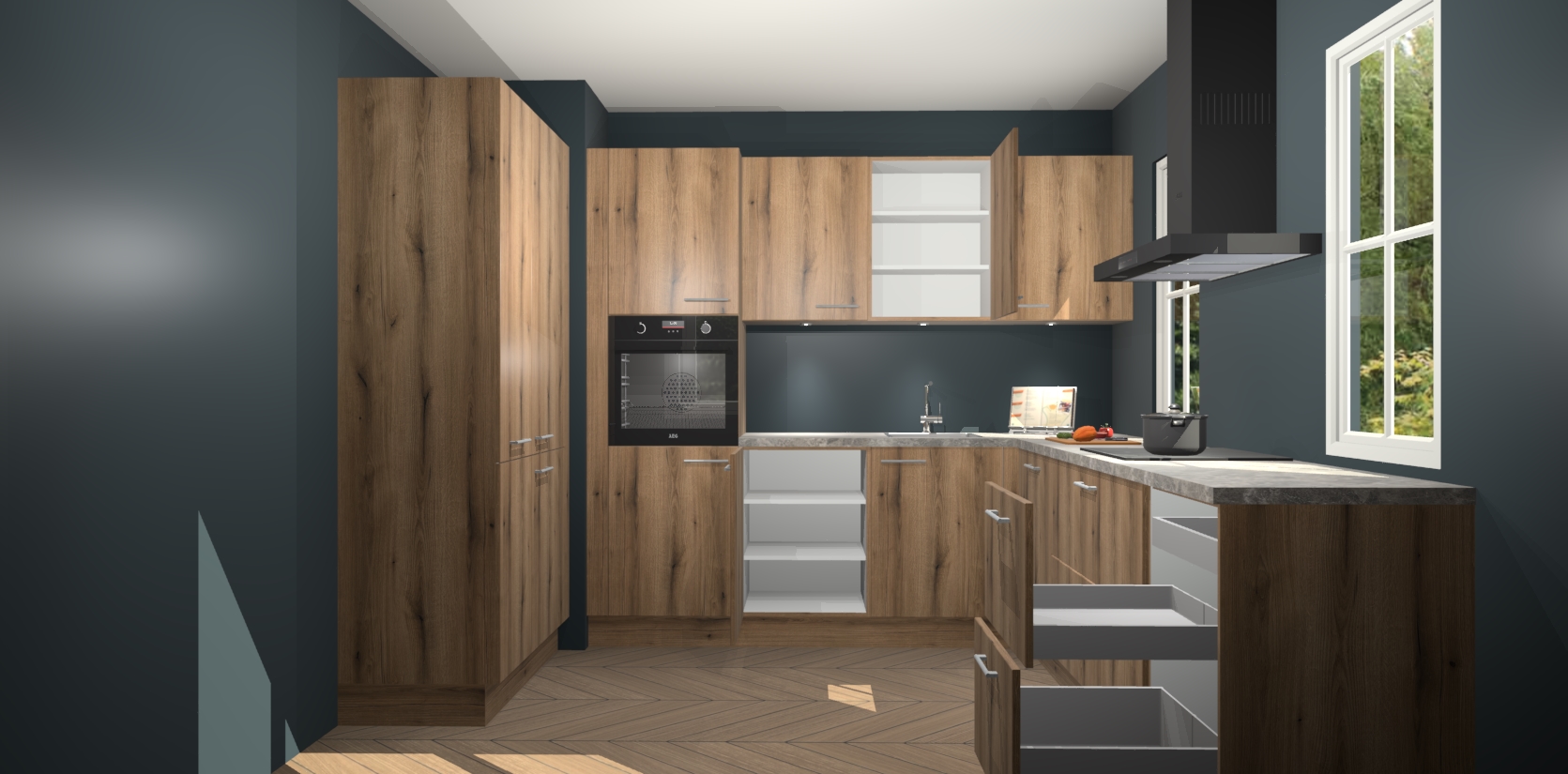 In deze box zijn alle kleuren verzameld van de deuren en werkbladen. Vraag de gratis kleurenbox aan en kijk thuis rustig verder!