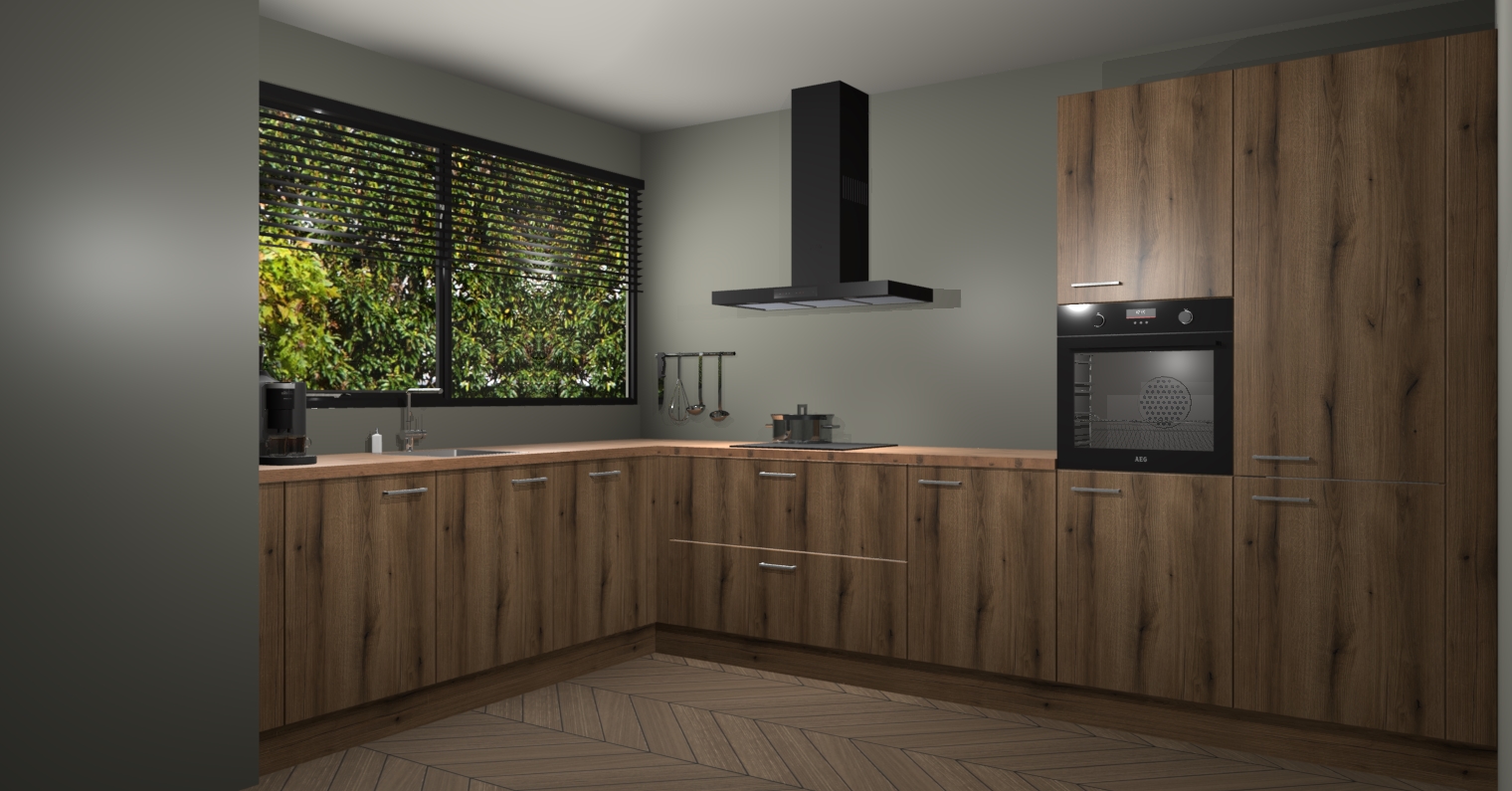 Met een modern, tijdloos design en ruime opslagruimte, zult u zich in no-time thuis voelen in uw nieuwe keuken. Uw leven wordt eenvoudiger met de soft-close deuren die voor het ultieme stille comfort zorgen - geen geluid dat u stoort terwijl u kookt. Ook is de keuken voorzien van 5 ingebouwde apparaten: een oven, inductie kookplaat, afzuigkap, vaatwasser en koelkast. Deze kunnen gemakkelijk na bestelling worden bijgewerkt naar AEG - waardoor uw luxe ervaring compleet is.