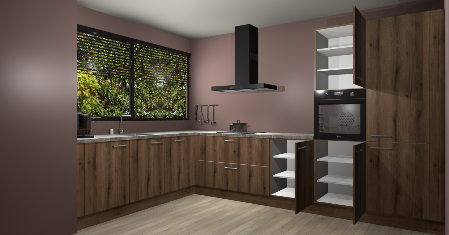 Met een modern, tijdloos design en ruime opslagruimte, zult u zich in no-time thuis voelen in uw nieuwe keuken. Uw leven wordt eenvoudiger met de soft-close deuren die voor het ultieme stille comfort zorgen - geen geluid dat u stoort terwijl u kookt. Ook is de keuken voorzien van 5 ingebouwde apparaten: een oven, inductie kookplaat, afzuigkap, vaatwasser en koelkast. Deze kunnen gemakkelijk na bestelling worden bijgewerkt naar AEG - waardoor uw luxe ervaring compleet is.