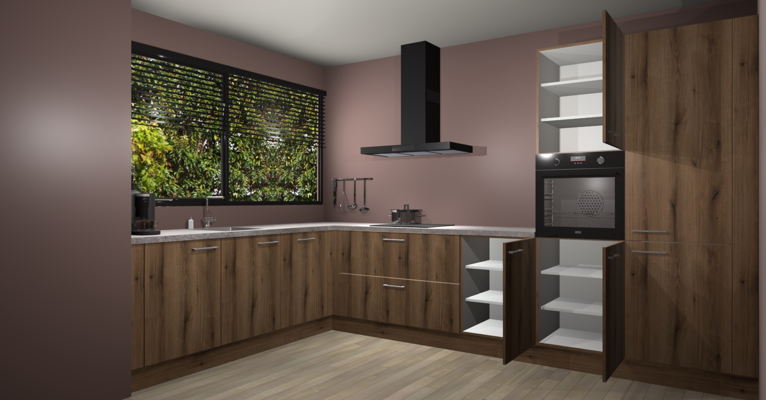 Met een modern, tijdloos design en ruime opslagruimte, zult u zich in no-time thuis voelen in uw nieuwe keuken. Uw leven wordt eenvoudiger met de soft-close deuren die voor het ultieme stille comfort zorgen - geen geluid dat u stoort terwijl u kookt. Ook is de keuken voorzien van 5 ingebouwde apparaten: een oven, inductie kookplaat, afzuigkap, vaatwasser en koelkast. Deze kunnen gemakkelijk na bestelling worden bijgewerkt naar AEG - waardoor uw luxe ervaring compleet is.