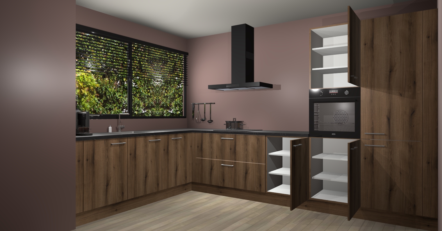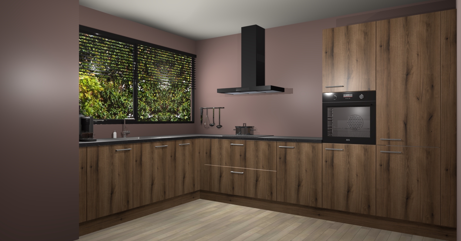Met een modern, tijdloos design en ruime opslagruimte, zult u zich in no-time thuis voelen in uw nieuwe keuken. Uw leven wordt eenvoudiger met de soft-close deuren die voor het ultieme stille comfort zorgen - geen geluid dat u stoort terwijl u kookt. Ook is de keuken voorzien van 5 ingebouwde apparaten: een oven, inductie kookplaat, afzuigkap, vaatwasser en koelkast. Deze kunnen gemakkelijk na bestelling worden bijgewerkt naar AEG - waardoor uw luxe ervaring compleet is.