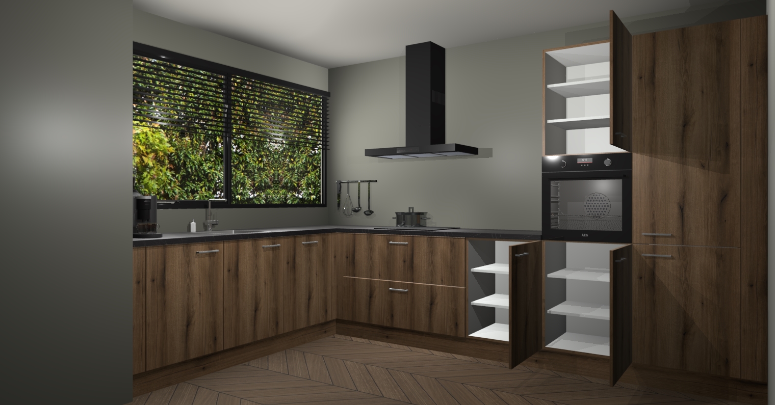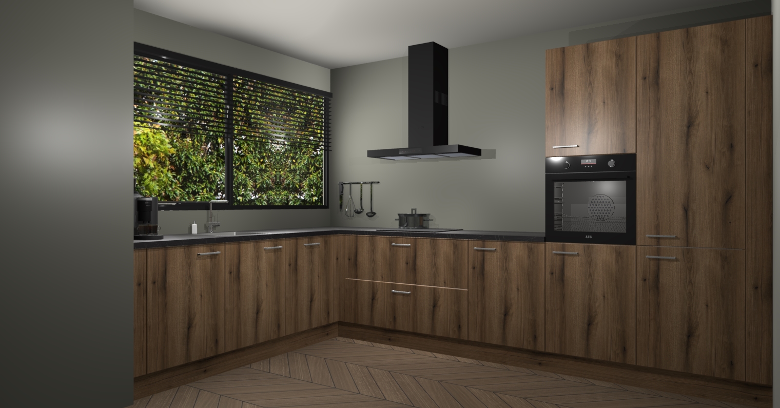 Met een modern, tijdloos design en ruime opslagruimte, zult u zich in no-time thuis voelen in uw nieuwe keuken. Uw leven wordt eenvoudiger met de soft-close deuren die voor het ultieme stille comfort zorgen - geen geluid dat u stoort terwijl u kookt. Ook is de keuken voorzien van 5 ingebouwde apparaten: een oven, inductie kookplaat, afzuigkap, vaatwasser en koelkast. Deze kunnen gemakkelijk na bestelling worden bijgewerkt naar AEG - waardoor uw luxe ervaring compleet is.