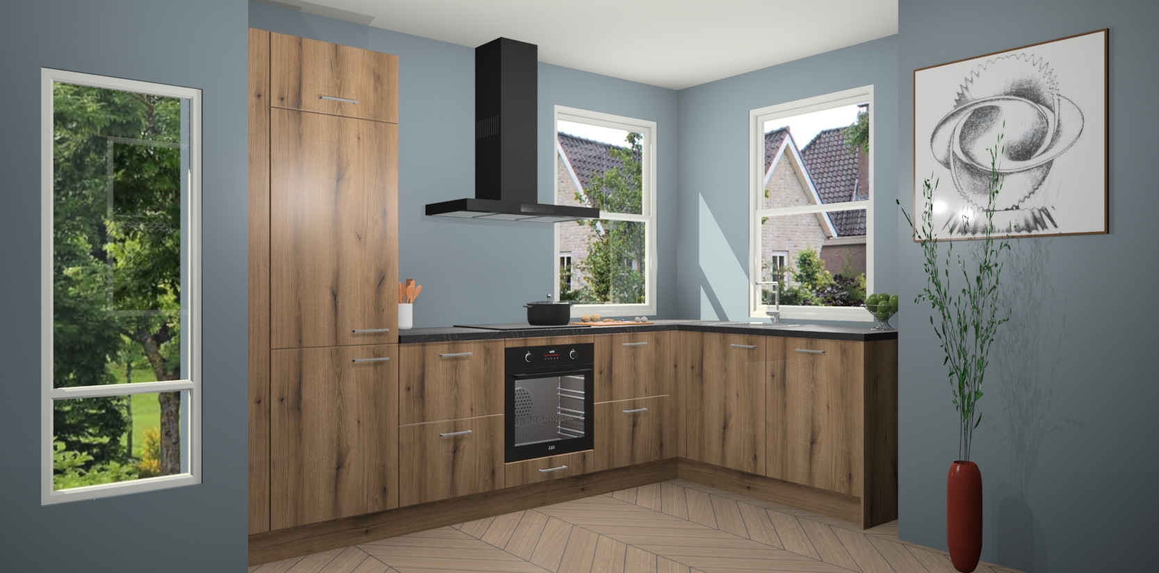 Welkom bij de Goud Eiken keuken Salzburg! Met een chique combinatie van een prachtig houten werkblad, klassiek design en altijd concurrerende prijzen is de Goud Eiken keuken Salzburg de keuken van uw dromen! Deze keuken is perfect voor alle huisformaten en decorstijlen en straalt stijl en verfijning uit. Van het tijdloze design tot de functionele functies, er is geen betere manier om de look van uw woon- of kookruimte te verbeteren.