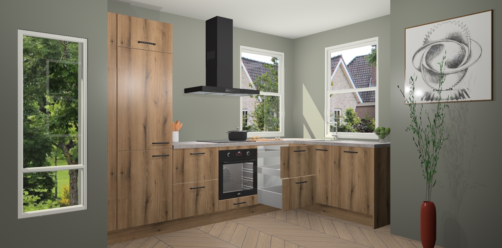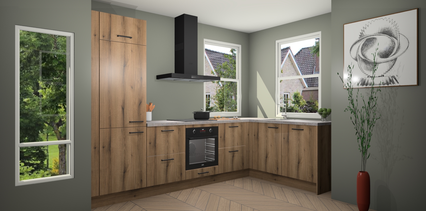 Welkom bij de Goud Eiken keuken Salzburg! Met een chique combinatie van een prachtig houten werkblad, klassiek design en altijd concurrerende prijzen is de Goud Eiken keuken Salzburg de keuken van uw dromen! Deze keuken is perfect voor alle huisformaten en decorstijlen en straalt stijl en verfijning uit. Van het tijdloze design tot de functionele functies, er is geen betere manier om de look van uw woon- of kookruimte te verbeteren.