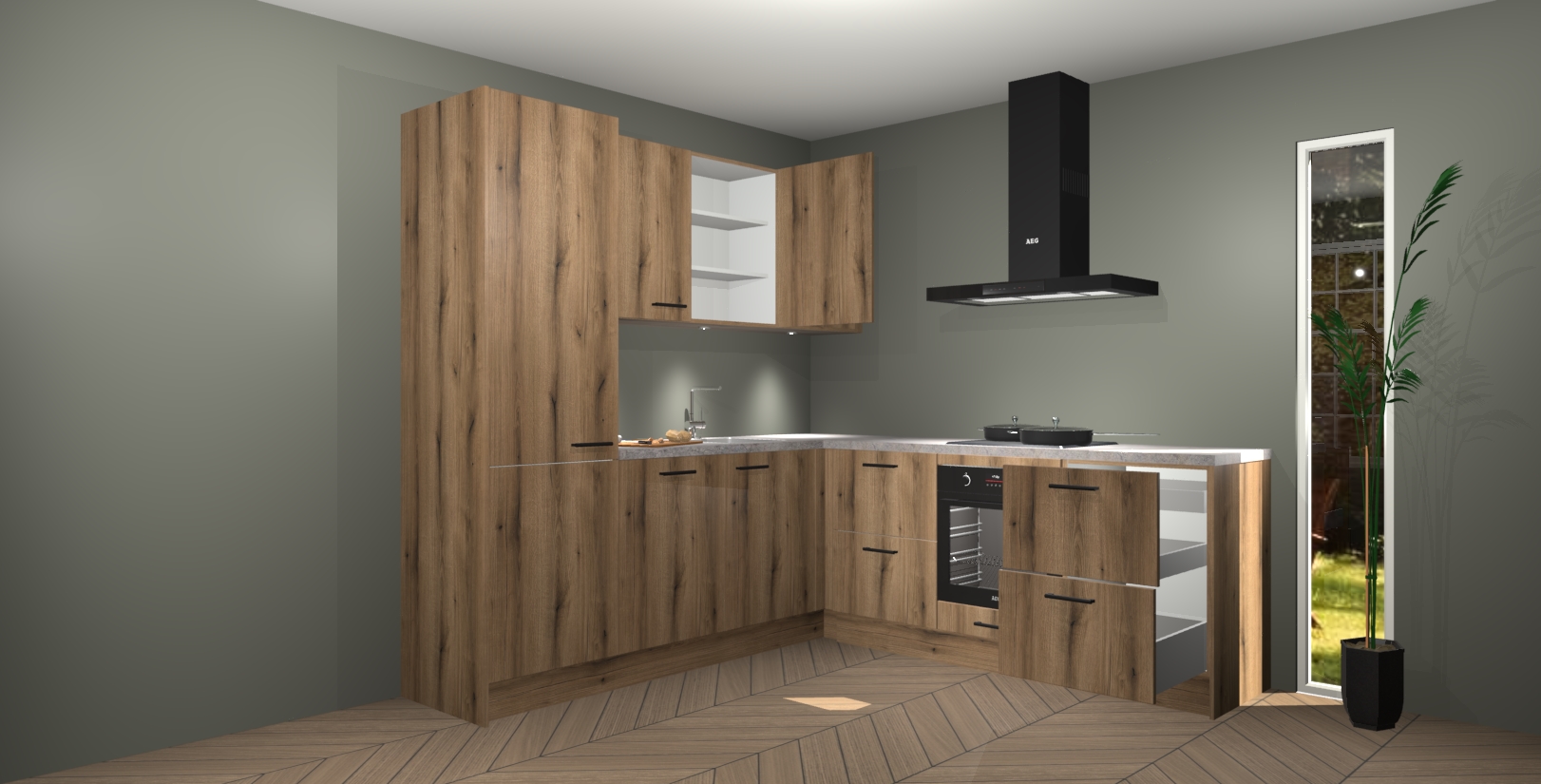 Inclusief plinten, stelpoten en werkblad