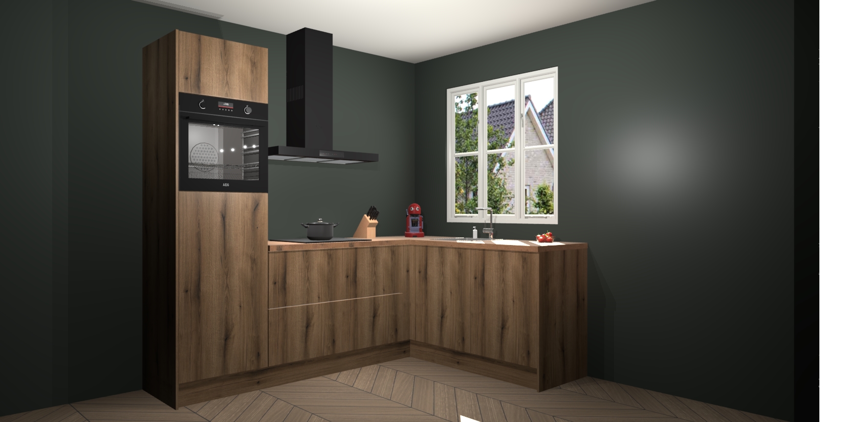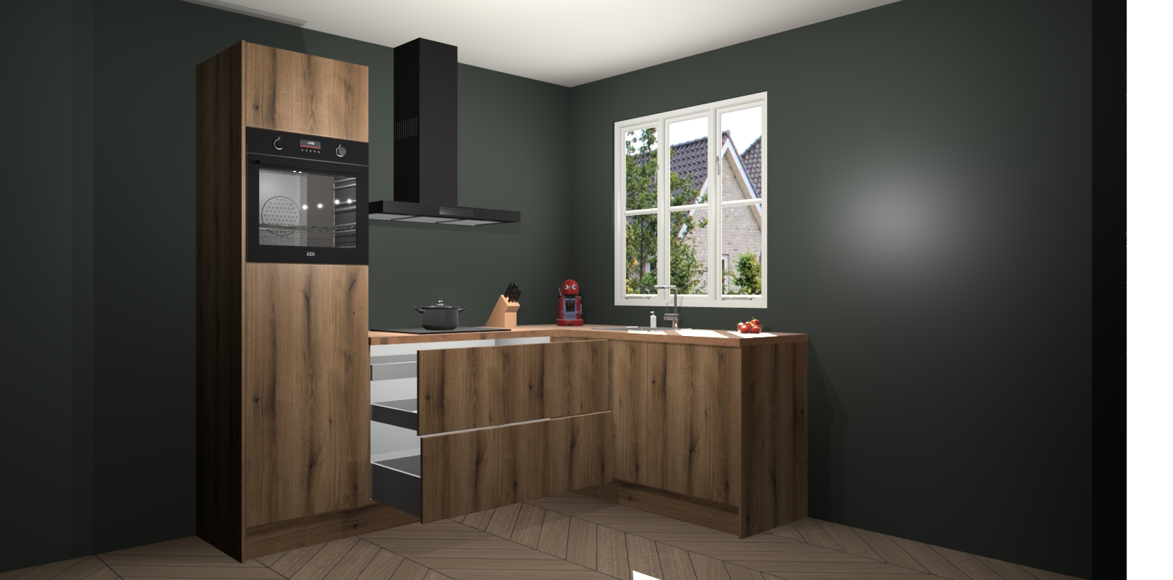 Dit model biedt u voldoende opbergruimte en vijf ingebouwde apparaten: een oven, inductiekookplaat, afzuigkap, vaatwasser en koelkast. Deze apparaten kunnen gemakkelijk worden geüpgrade naar AEG nadat u besteld heeft. De verschillende laden en kastjes bevatten softclose-deuren waardoor ze gezellig dichtvallen met een geruststellend helemaal geruisloos geluid. En dat is nog niet alles! We garanderen ook dat de prijs altijd laag blijft - dus haal nu uw Goud Eiken keuken Victoria terwijl het kan.