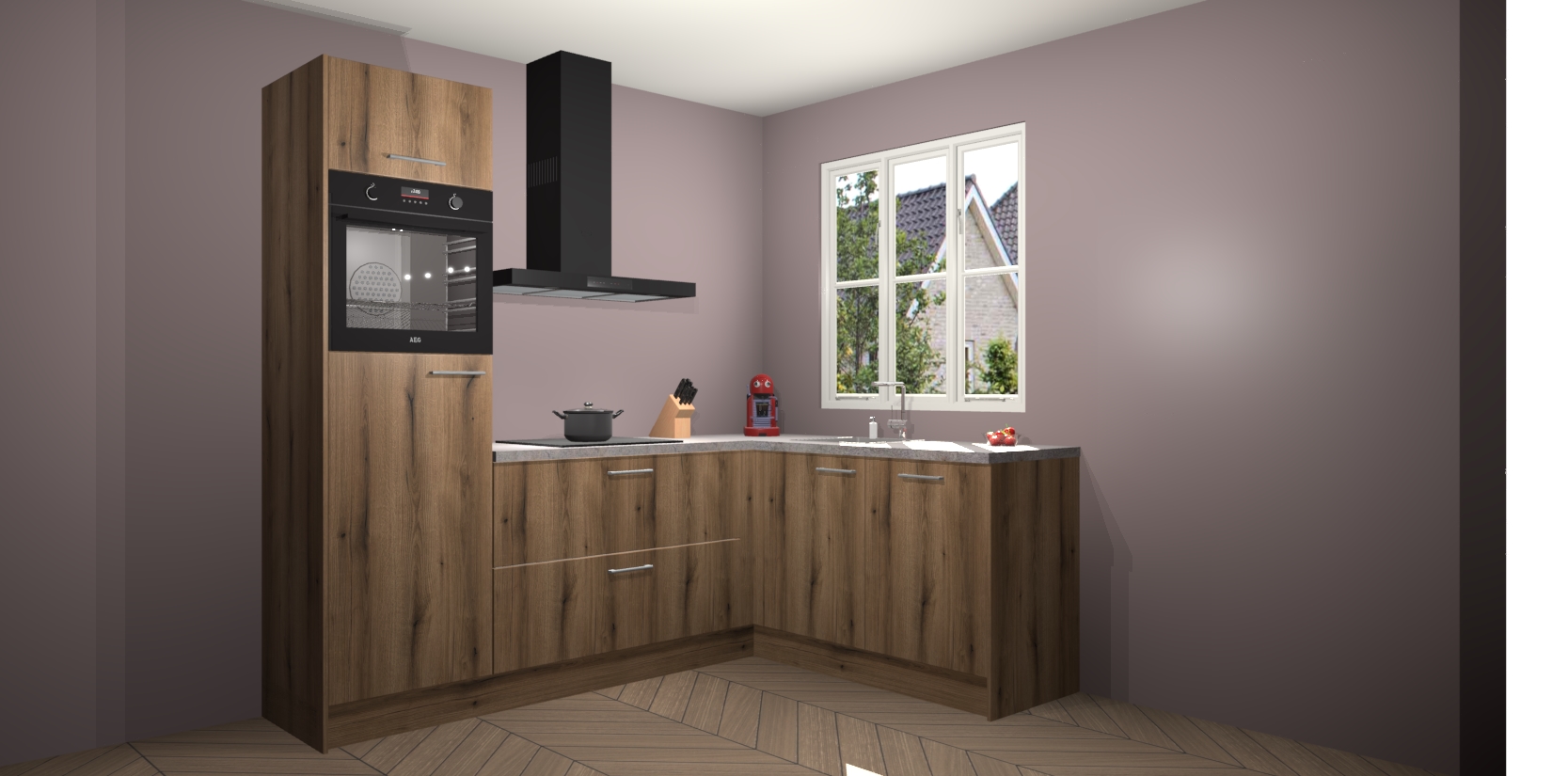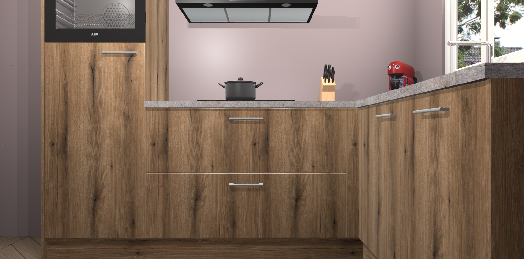 Dit model biedt u voldoende opbergruimte en vijf ingebouwde apparaten: een oven, inductiekookplaat, afzuigkap, vaatwasser en koelkast. Deze apparaten kunnen gemakkelijk worden geüpgrade naar AEG nadat u besteld heeft. De verschillende laden en kastjes bevatten softclose-deuren waardoor ze gezellig dichtvallen met een geruststellend helemaal geruisloos geluid. En dat is nog niet alles! We garanderen ook dat de prijs altijd laag blijft - dus haal nu uw Goud Eiken keuken Victoria terwijl het kan.
