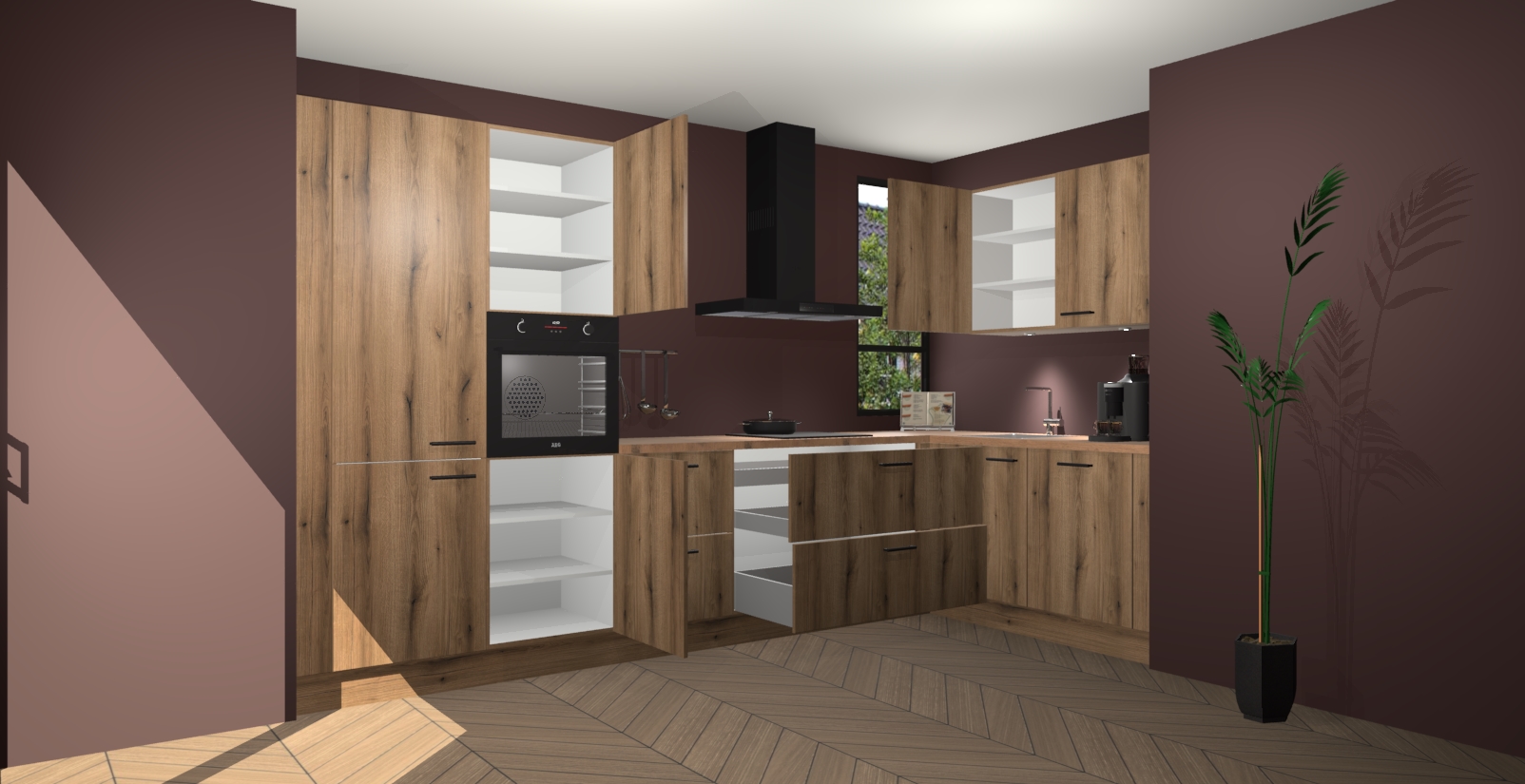 Welkom in uw nieuwe moderne keuken! Laat ons u voorstellen aan de Goud Eiken keuken Vlaanderen . Deze prachtige hoekkeuken straalt exclusiviteit en luxe uit als geen ander. Het strakke design, de tijdloze kleuren en het model maken van deze keuken een moderne klassieker. En met voldoende opbergruimte heeft deze keuken echt voor ieder wat wils.
