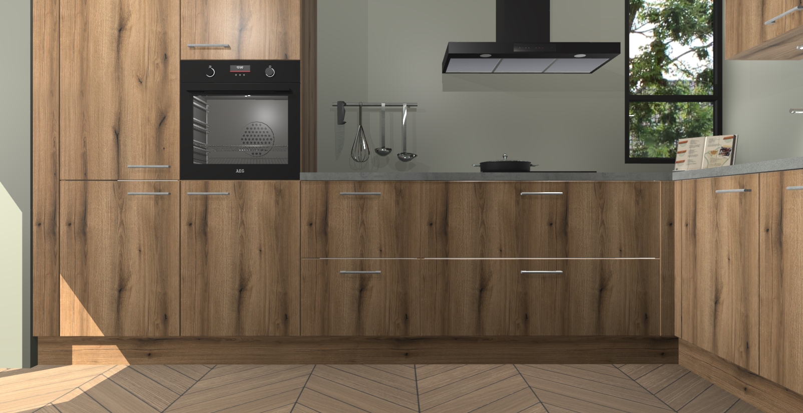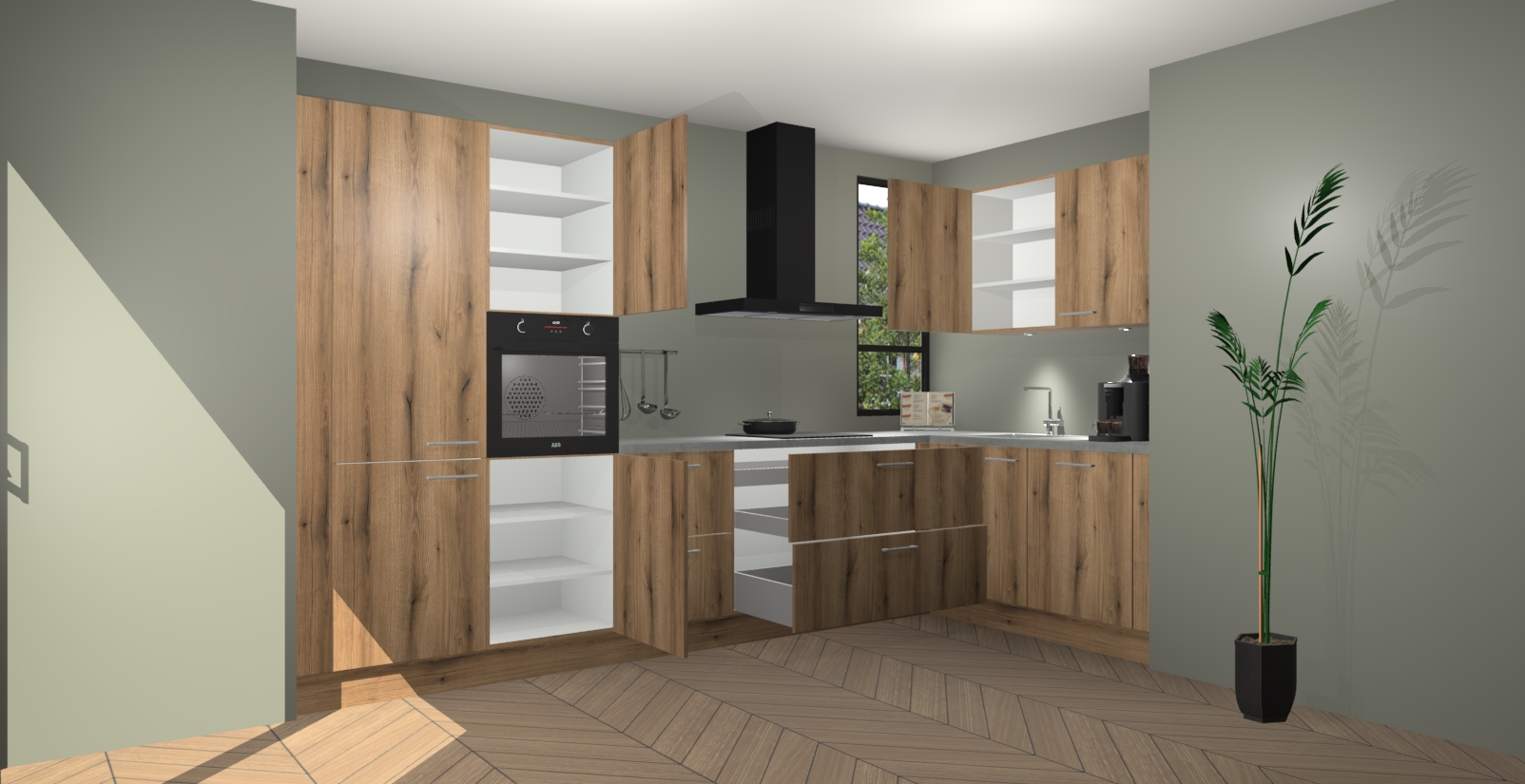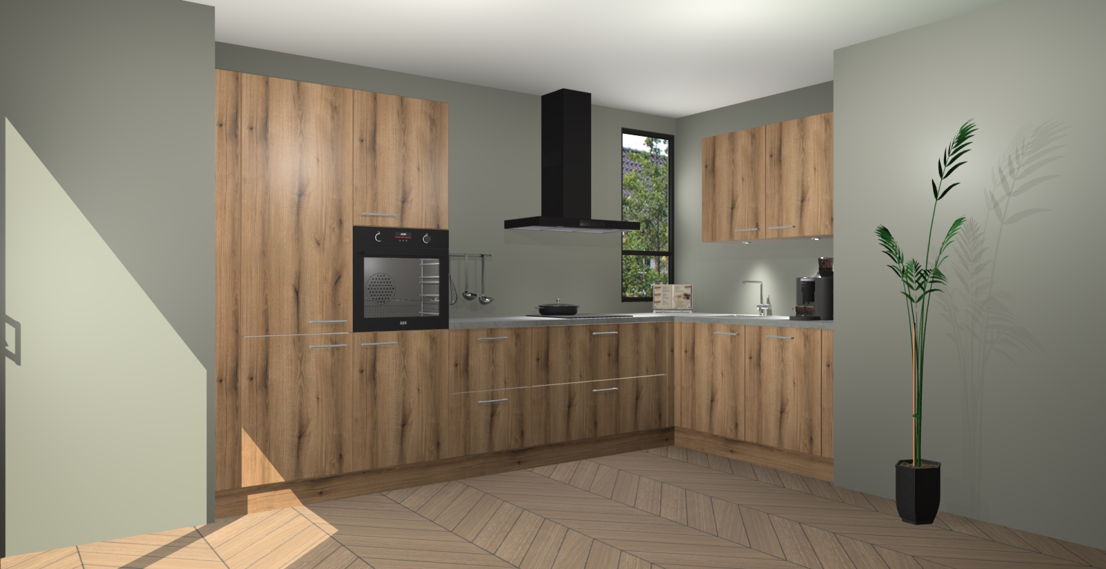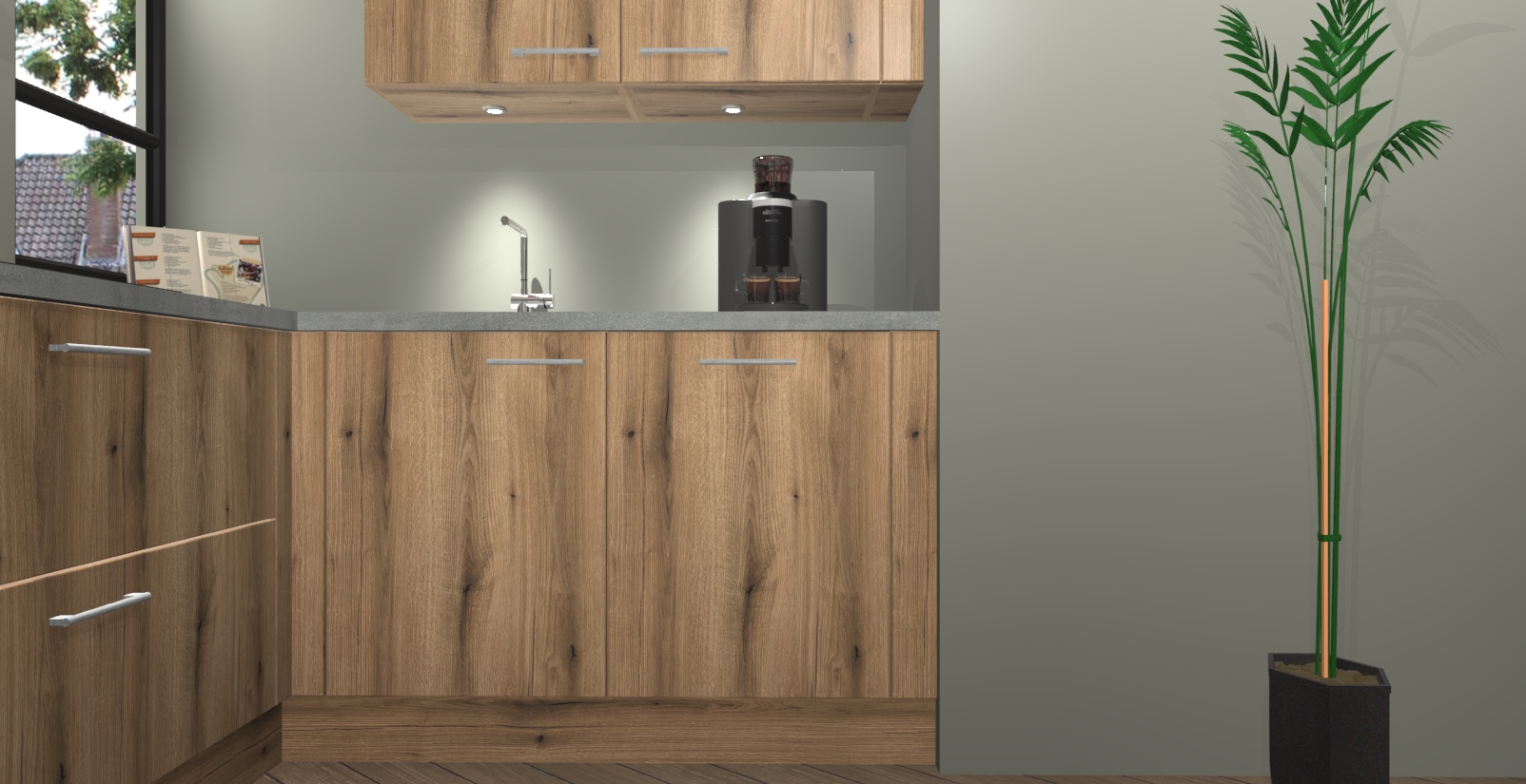 Welkom in uw nieuwe moderne keuken! Laat ons u voorstellen aan de Goud Eiken keuken Vlaanderen . Deze prachtige hoekkeuken straalt exclusiviteit en luxe uit als geen ander. Het strakke design, de tijdloze kleuren en het model maken van deze keuken een moderne klassieker. En met voldoende opbergruimte heeft deze keuken echt voor ieder wat wils.