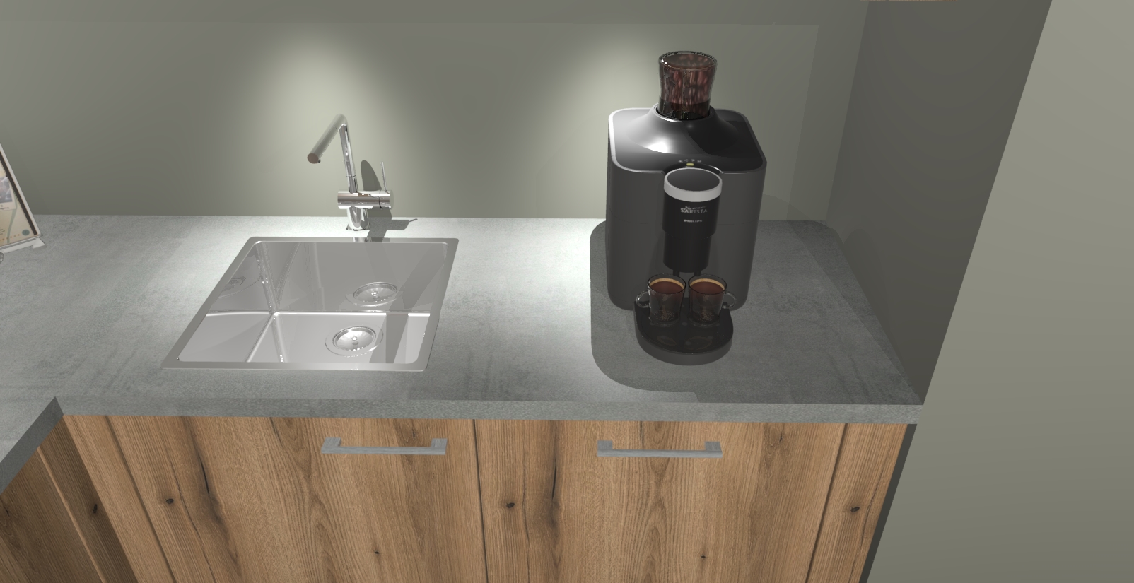 - De spoelbak is nog niet in gevreesd. Dit dient tijdens het werk gedaan te worden