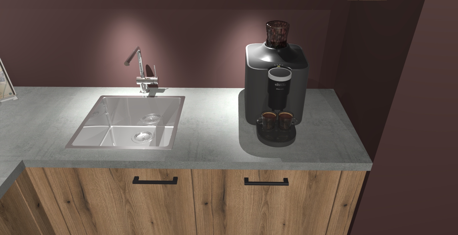 - De spoelbak is nog niet in gevreesd. Dit dient tijdens het werk gedaan te worden