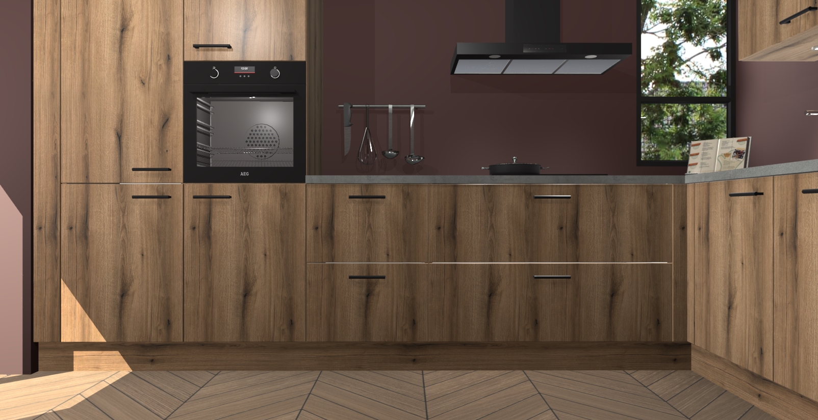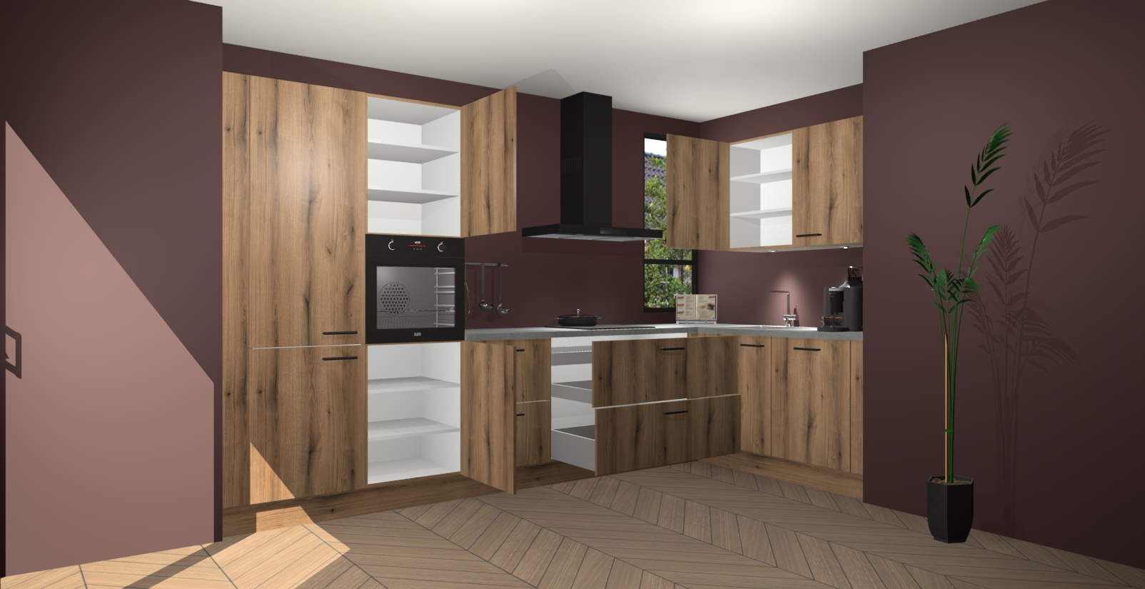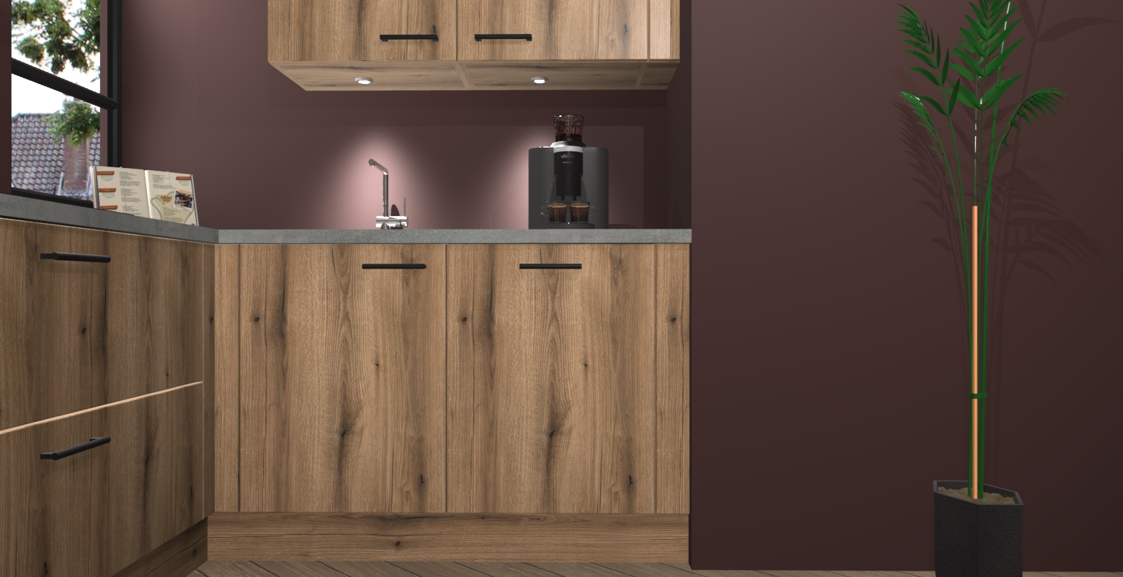 Welkom in uw nieuwe moderne keuken! Laat ons u voorstellen aan de Goud Eiken keuken Vlaanderen . Deze prachtige hoekkeuken straalt exclusiviteit en luxe uit als geen ander. Het strakke design, de tijdloze kleuren en het model maken van deze keuken een moderne klassieker. En met voldoende opbergruimte heeft deze keuken echt voor ieder wat wils.