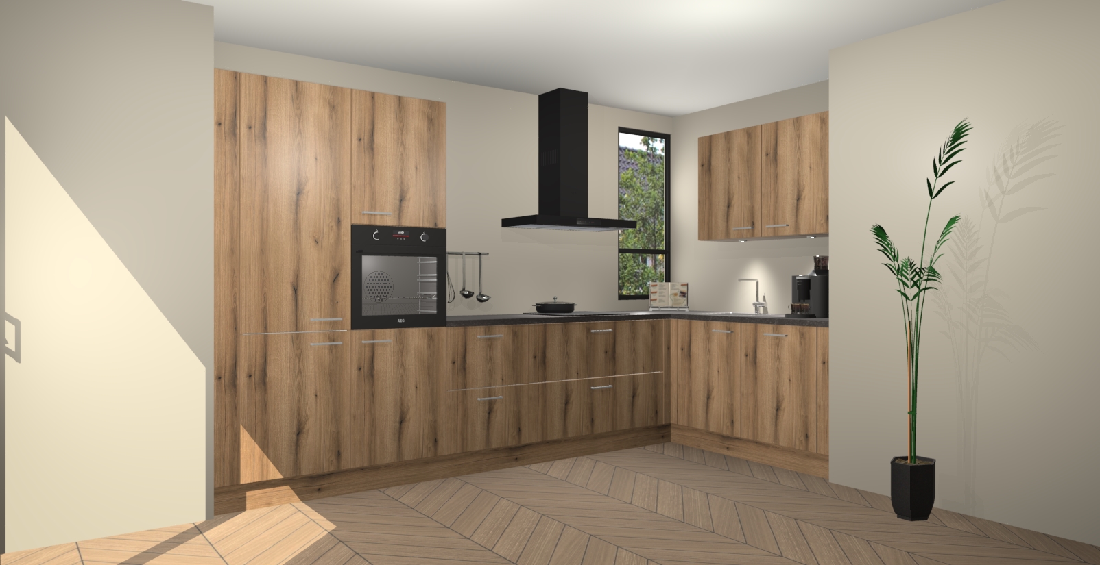 Welkom in uw nieuwe moderne keuken! Laat ons u voorstellen aan de Goud Eiken keuken Vlaanderen . Deze prachtige hoekkeuken straalt exclusiviteit en luxe uit als geen ander. Het strakke design, de tijdloze kleuren en het model maken van deze keuken een moderne klassieker. En met voldoende opbergruimte heeft deze keuken echt voor ieder wat wils.
