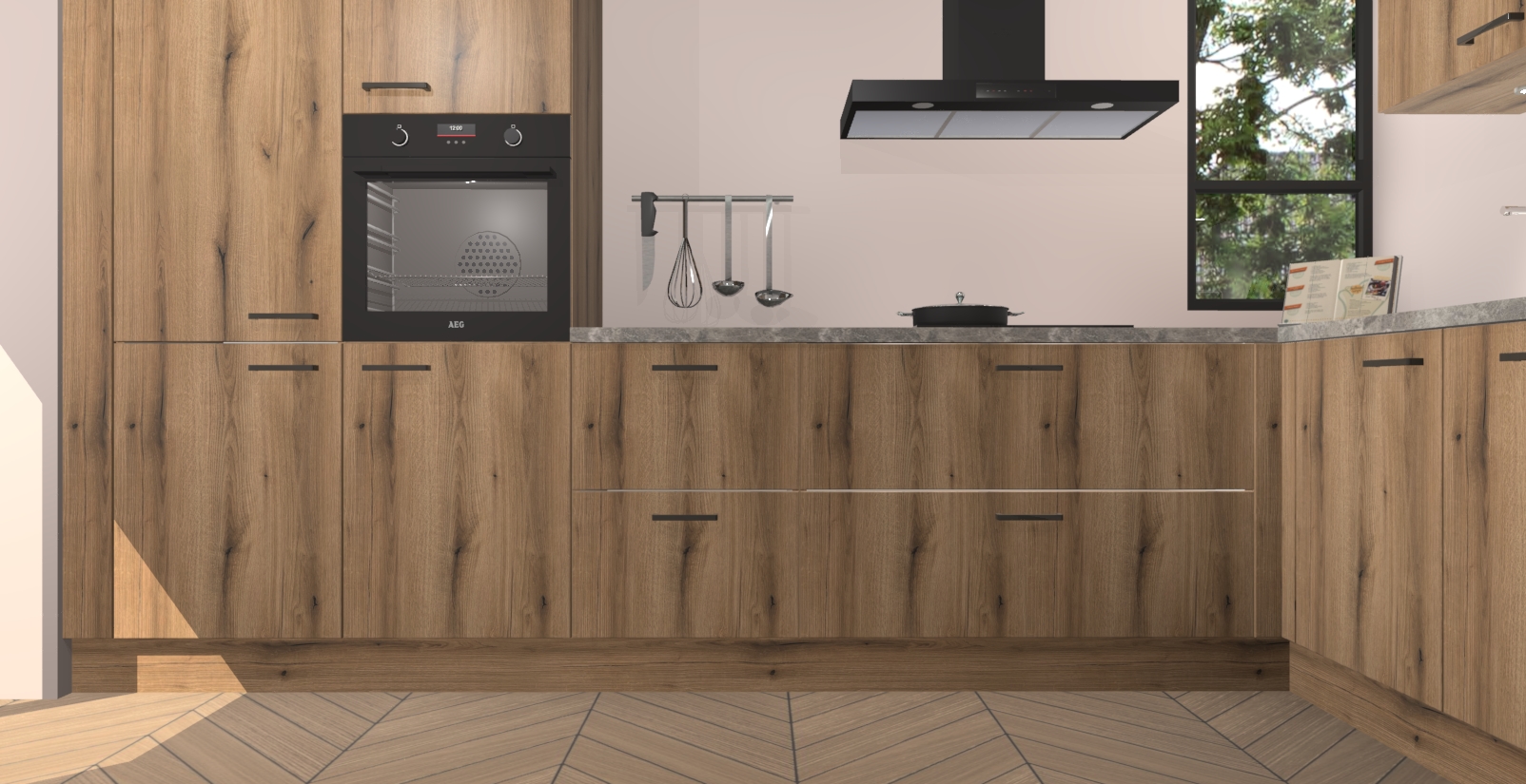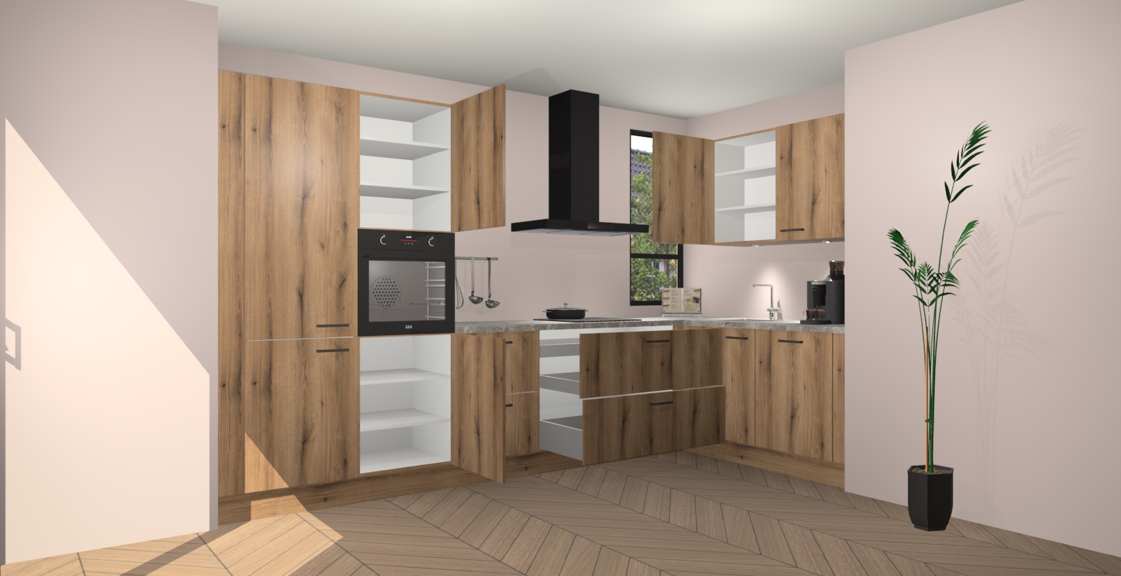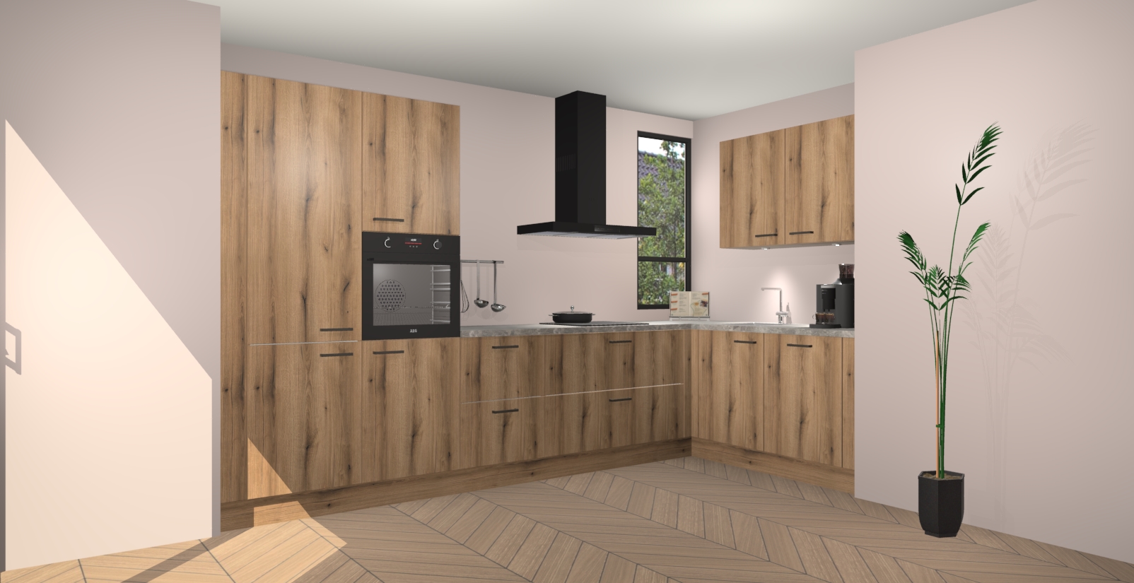 Welkom in uw nieuwe moderne keuken! Laat ons u voorstellen aan de Goud Eiken keuken Vlaanderen . Deze prachtige hoekkeuken straalt exclusiviteit en luxe uit als geen ander. Het strakke design, de tijdloze kleuren en het model maken van deze keuken een moderne klassieker. En met voldoende opbergruimte heeft deze keuken echt voor ieder wat wils.
