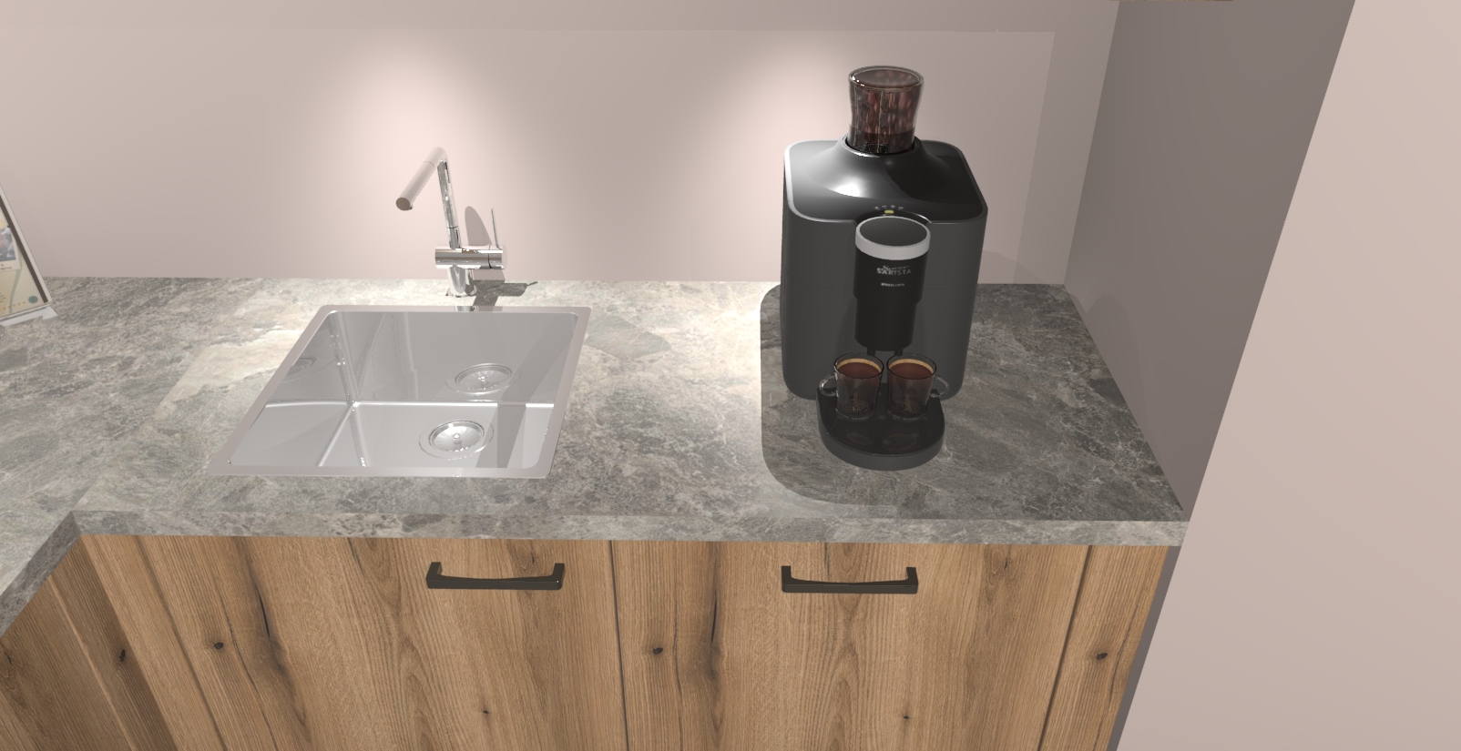• De spoelbak is nog niet in gevreesd. Dit dient tijdens het werk gedaan te worden