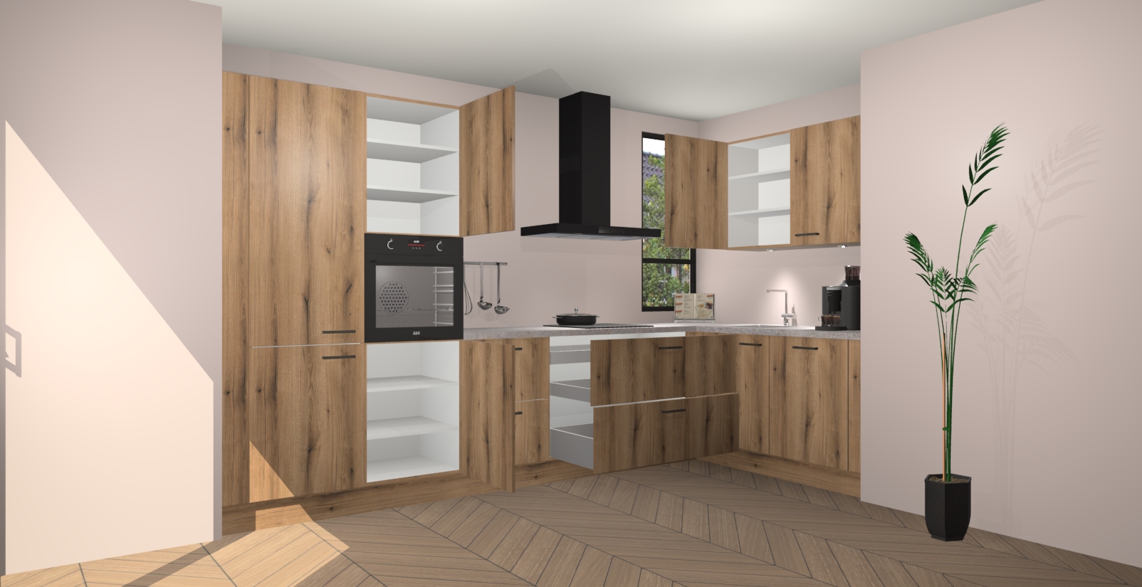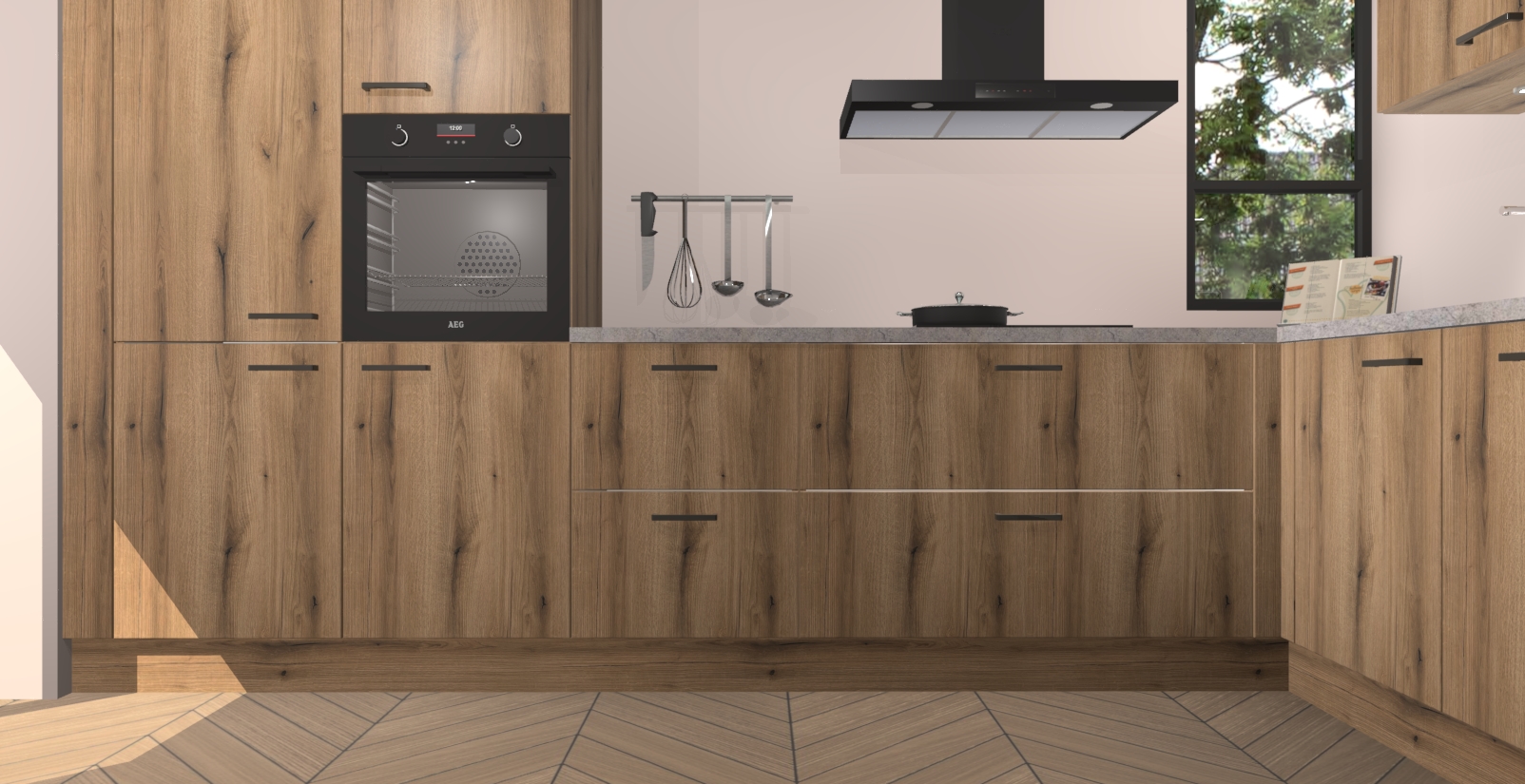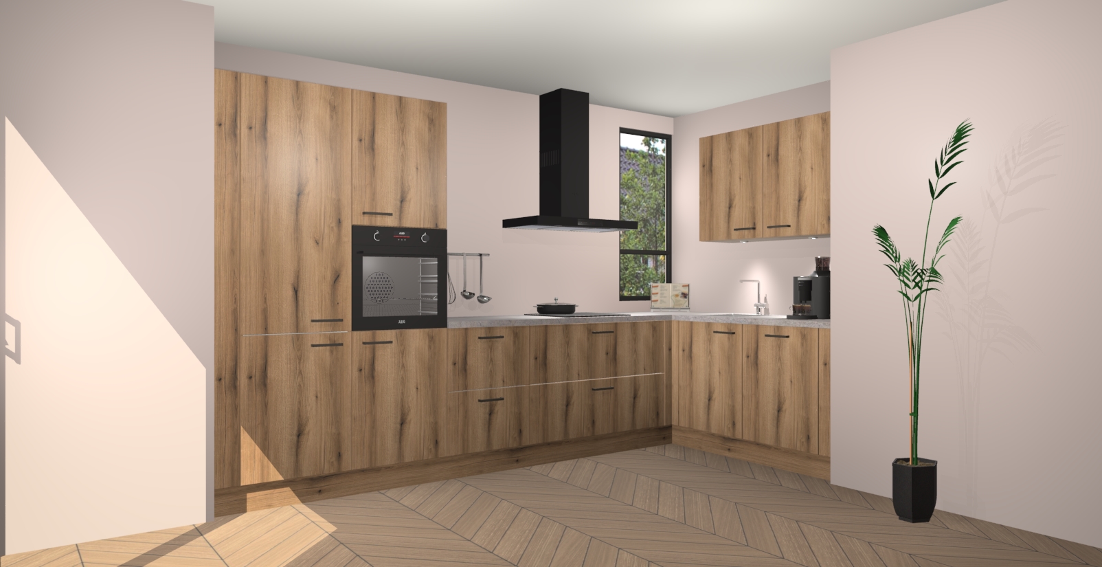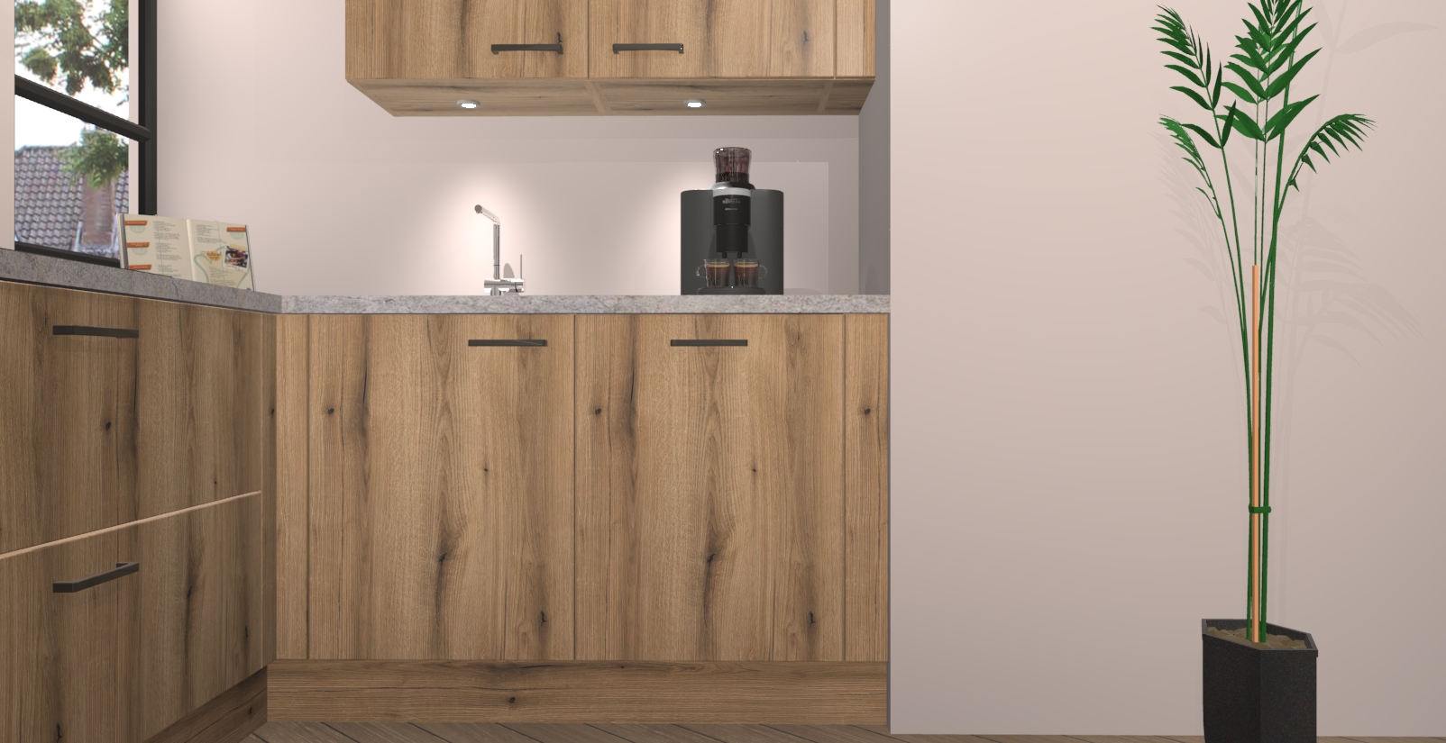 Welkom in uw nieuwe moderne keuken! Laat ons u voorstellen aan de Goud Eiken keuken Vlaanderen . Deze prachtige hoekkeuken straalt exclusiviteit en luxe uit als geen ander. Het strakke design, de tijdloze kleuren en het model maken van deze keuken een moderne klassieker. En met voldoende opbergruimte heeft deze keuken echt voor ieder wat wils.