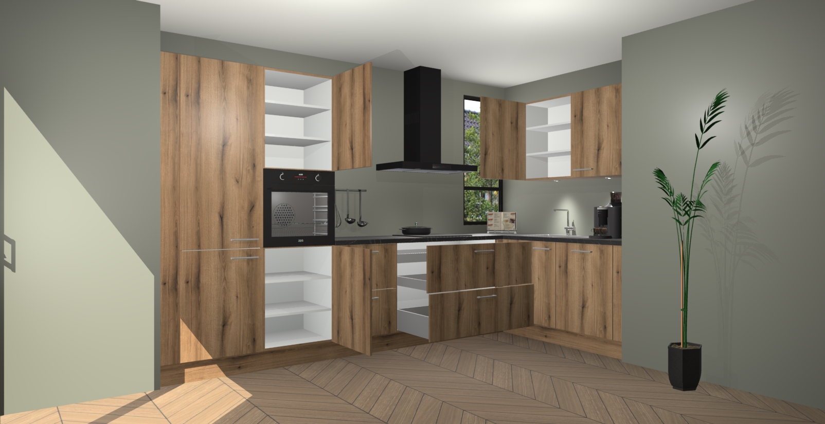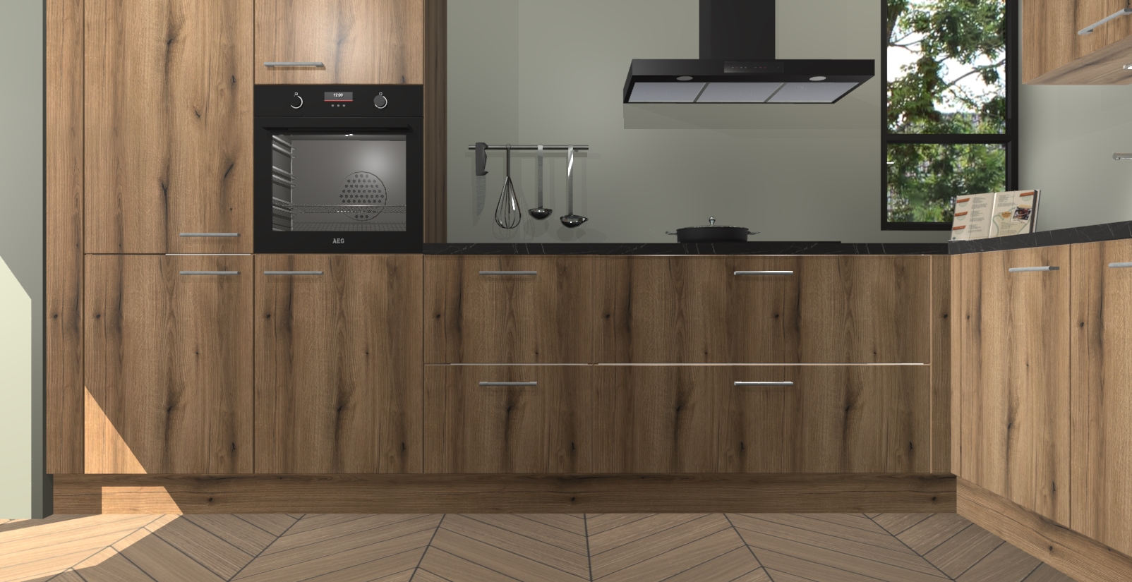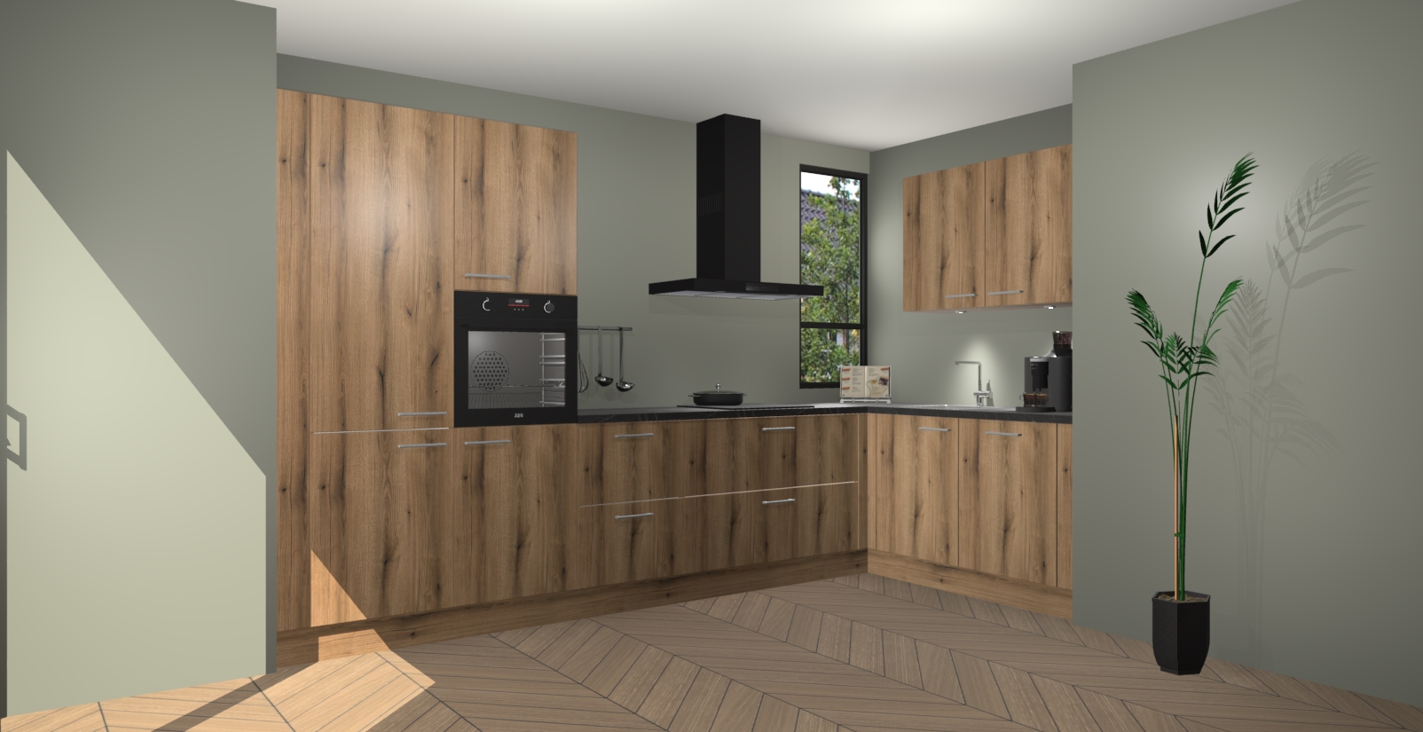 Welkom in uw nieuwe moderne keuken! Laat ons u voorstellen aan de Goud Eiken keuken Vlaanderen . Deze prachtige hoekkeuken straalt exclusiviteit en luxe uit als geen ander. Het strakke design, de tijdloze kleuren en het model maken van deze keuken een moderne klassieker. En met voldoende opbergruimte heeft deze keuken echt voor ieder wat wils.