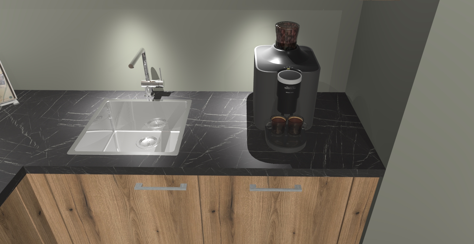 • De spoelbak is nog niet in gevreesd. Dit dient tijdens het werk gedaan te worden