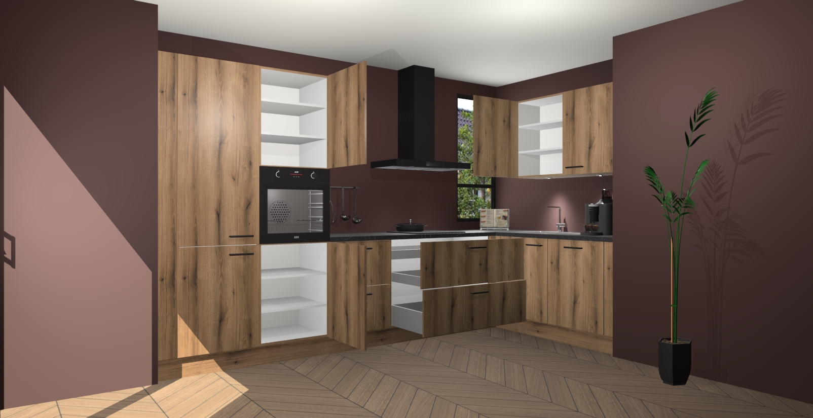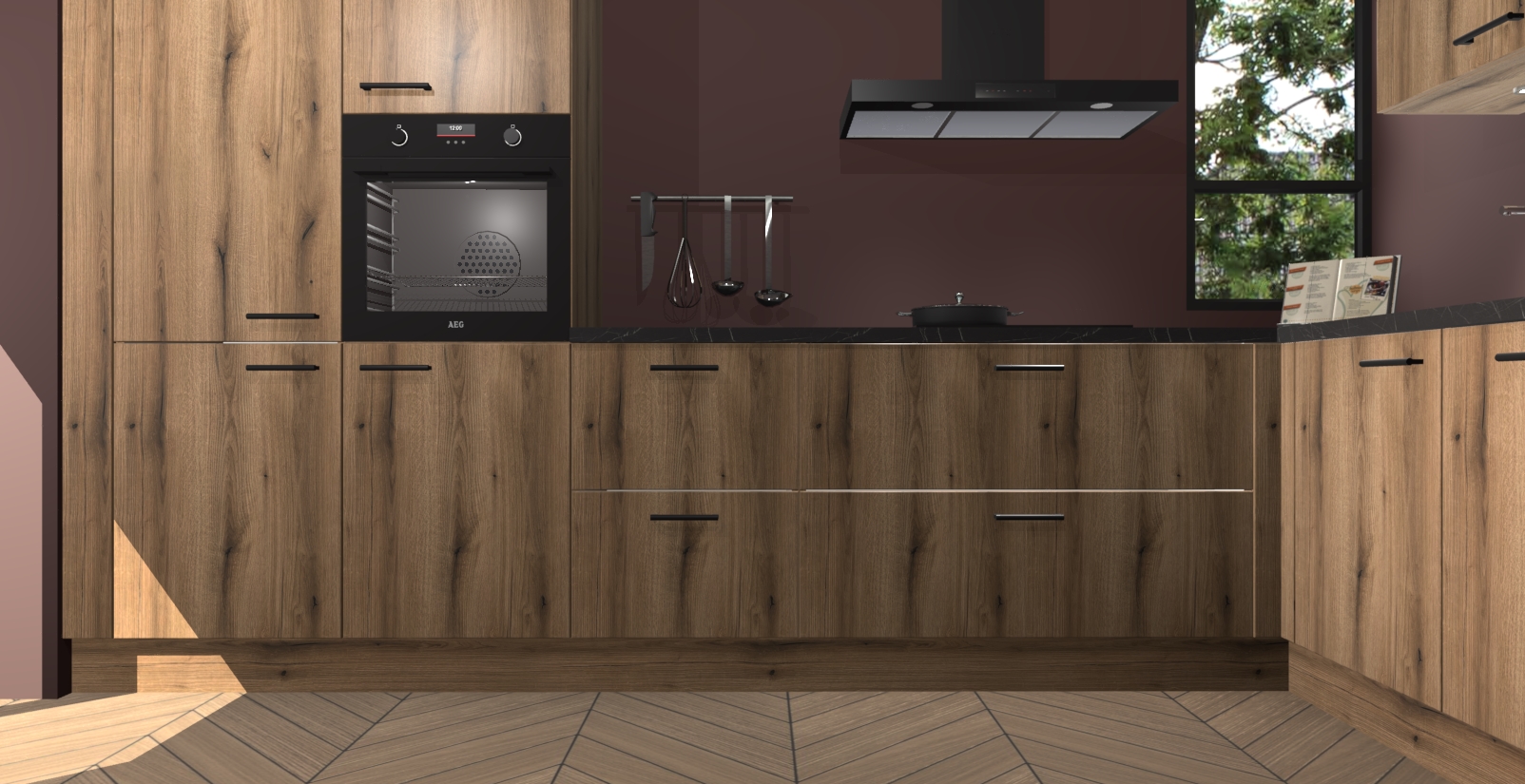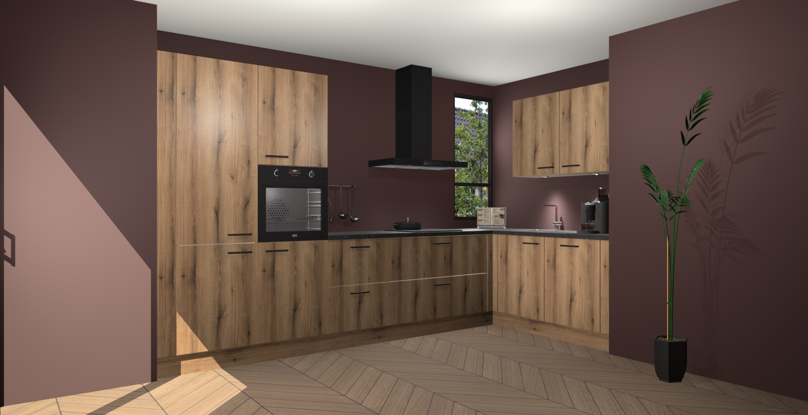 Welkom in uw nieuwe moderne keuken! Laat ons u voorstellen aan de Goud Eiken keuken Vlaanderen . Deze prachtige hoekkeuken straalt exclusiviteit en luxe uit als geen ander. Het strakke design, de tijdloze kleuren en het model maken van deze keuken een moderne klassieker. En met voldoende opbergruimte heeft deze keuken echt voor ieder wat wils.