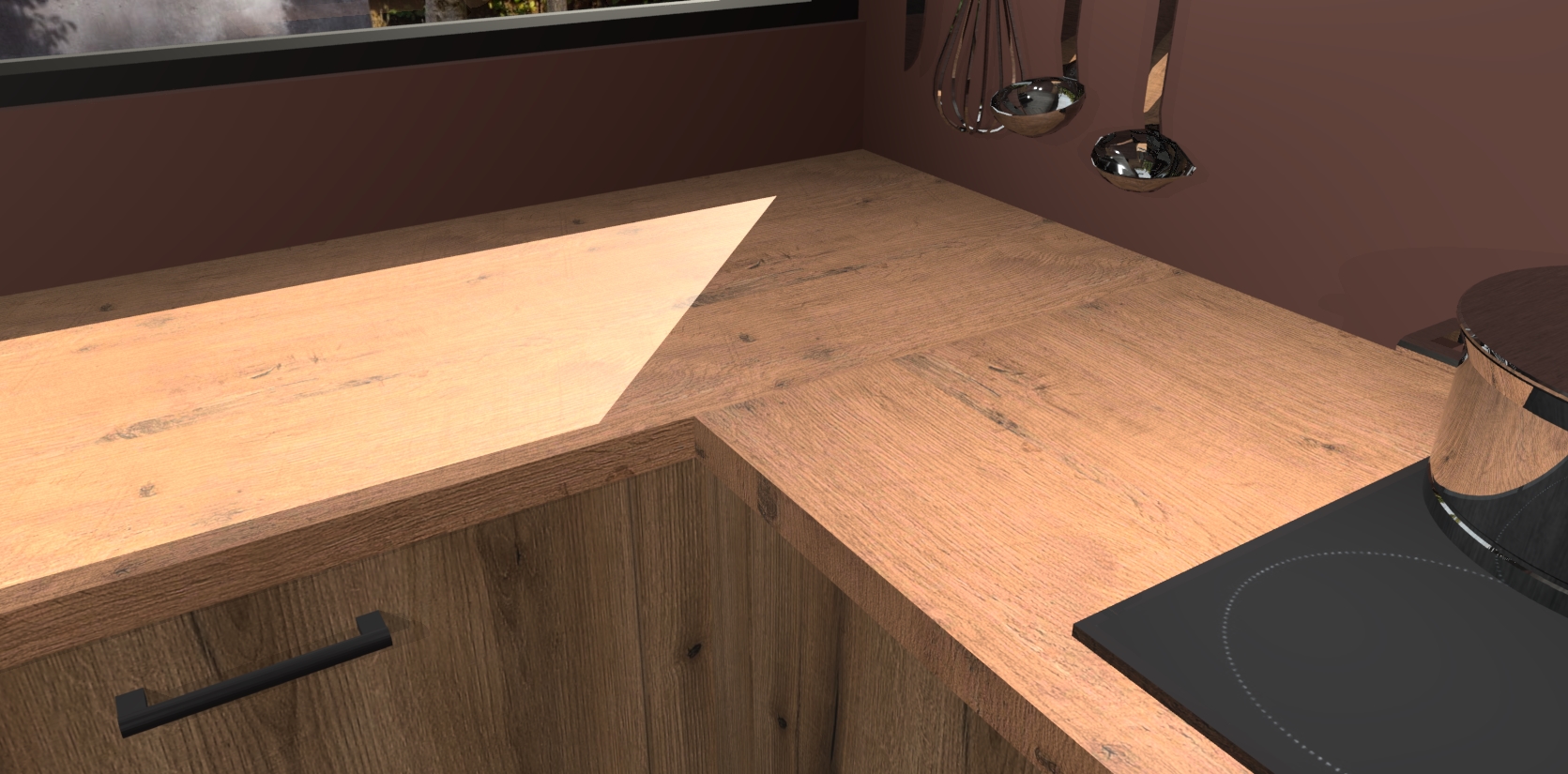 - Bij een hoekwerkblad zijn de hoeken in gevreesd en op maat gemaakt