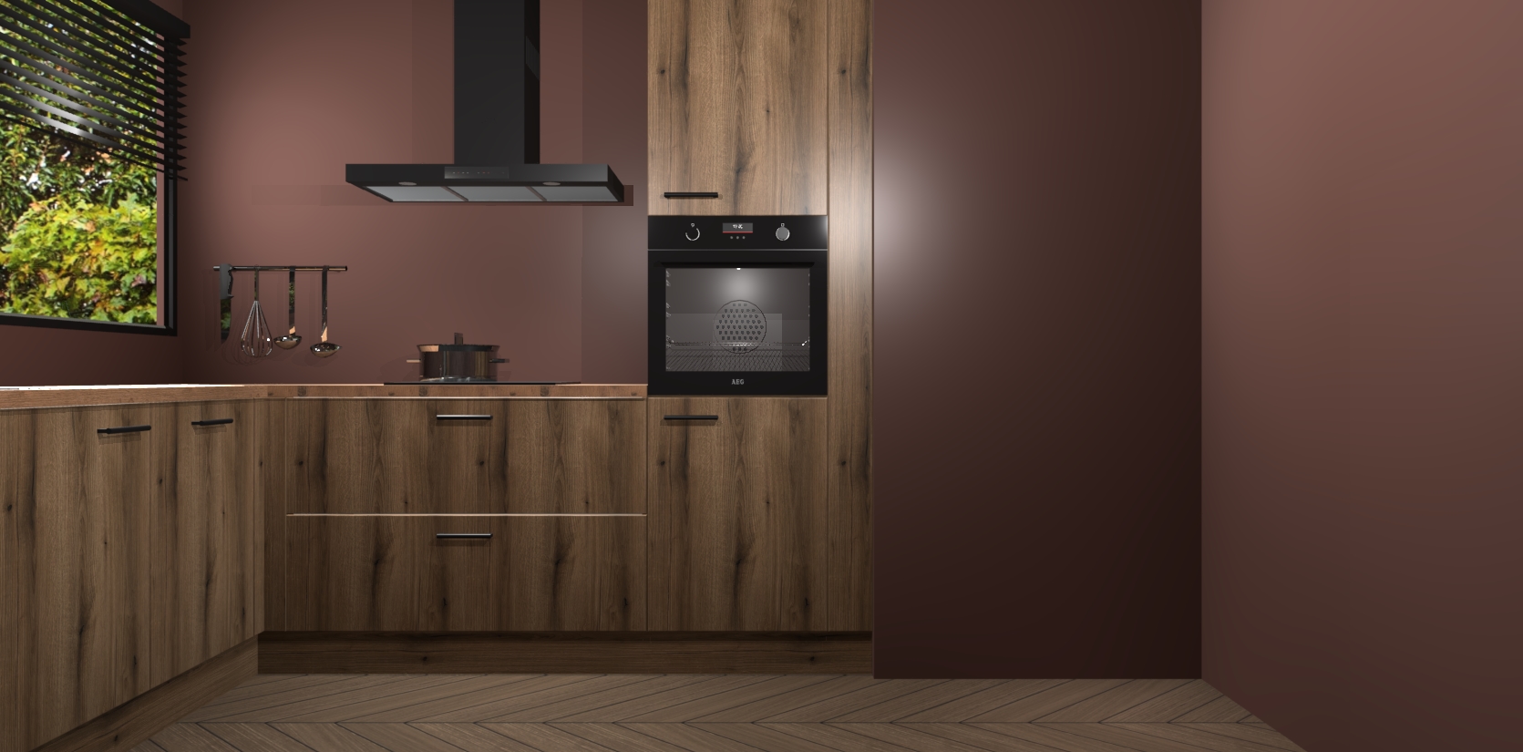 Met een modern, tijdloos design en ruime opslagruimte, zult u zich in no-time thuis voelen in uw nieuwe keuken. Uw leven wordt eenvoudiger met de soft-close deuren die voor het ultieme stille comfort zorgen - geen geluid dat u stoort terwijl u kookt. Ook is de keuken voorzien van 5 ingebouwde apparaten: een oven, inductie kookplaat, afzuigkap, vaatwasser en koelkast. Deze kunnen gemakkelijk na bestelling worden bijgewerkt naar AEG - waardoor uw luxe ervaring compleet is.