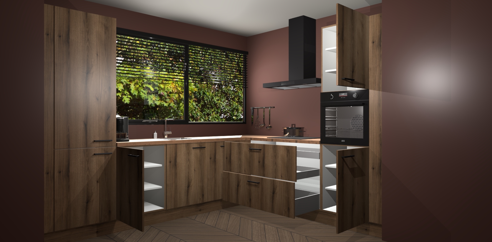 Wij presenteren de revolutie in keukens: de goud eiken keuken Vogar. Met modern design, een tijdloos uiterlijk en kasten die al voor gemonteerd worden geleverd, laat deze stijlvolle keuken uw kookervaring op een hele nieuwe manier transformeren.