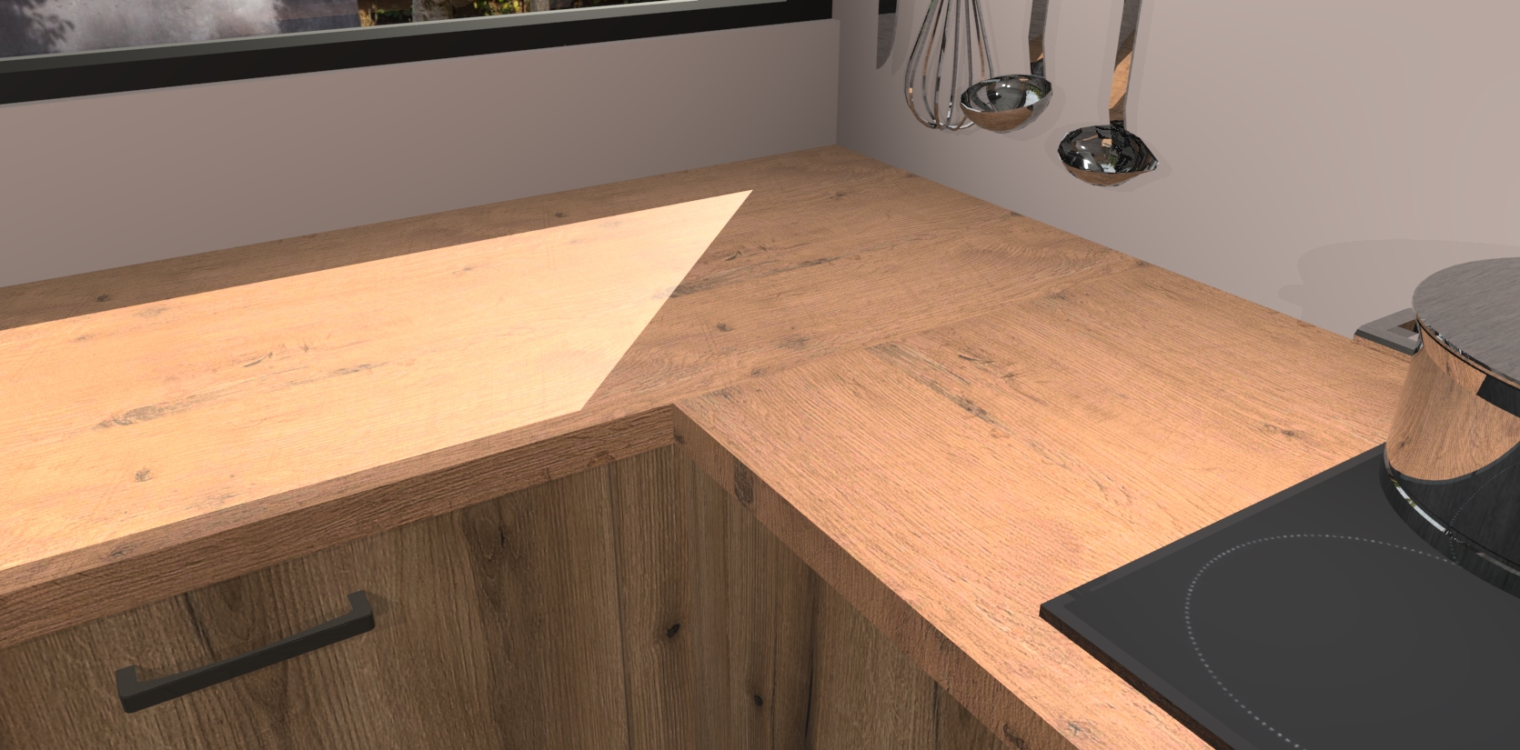 - Bij een hoekwerkblad zijn de hoeken in gevreesd en op maat gemaakt