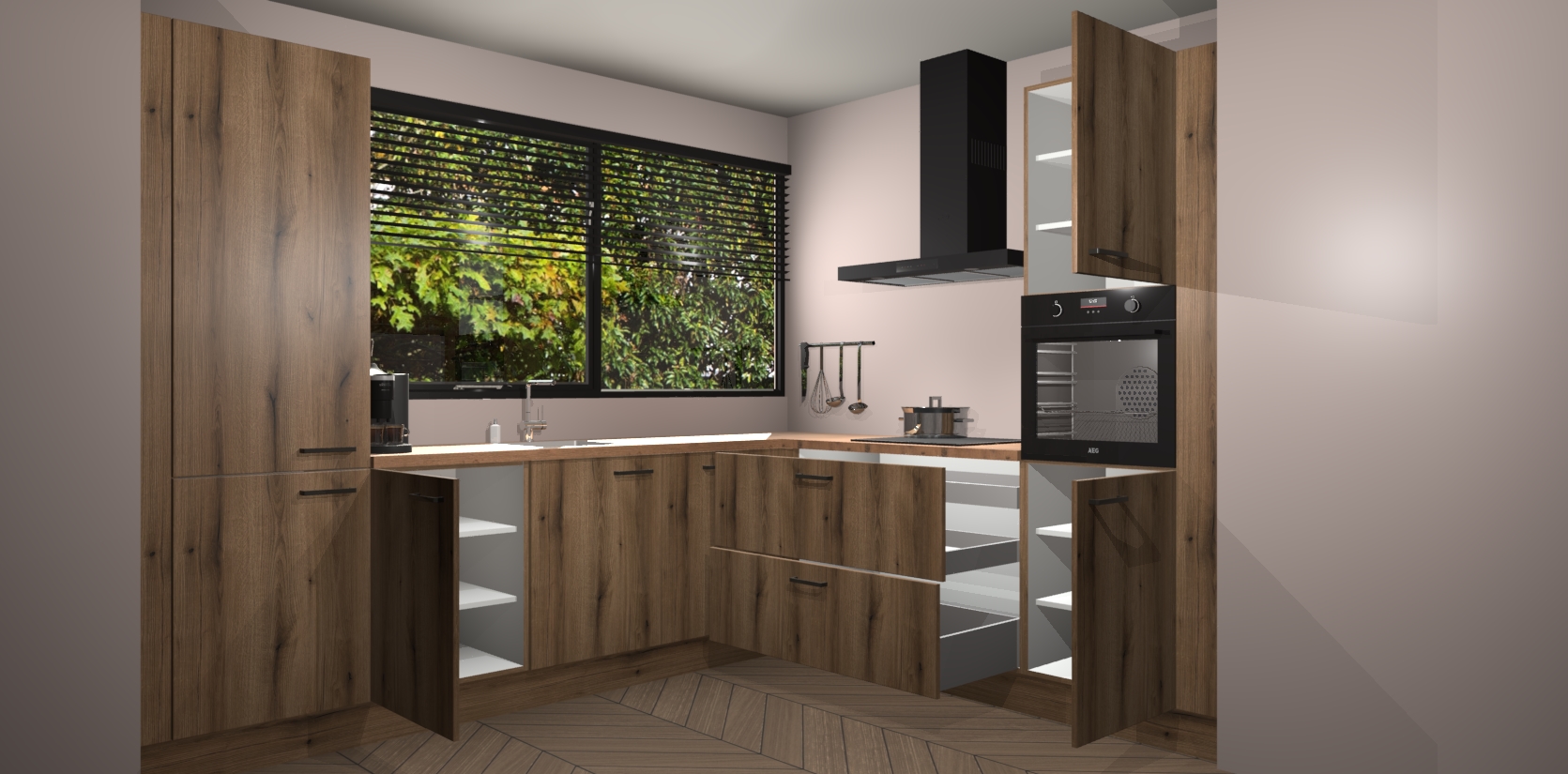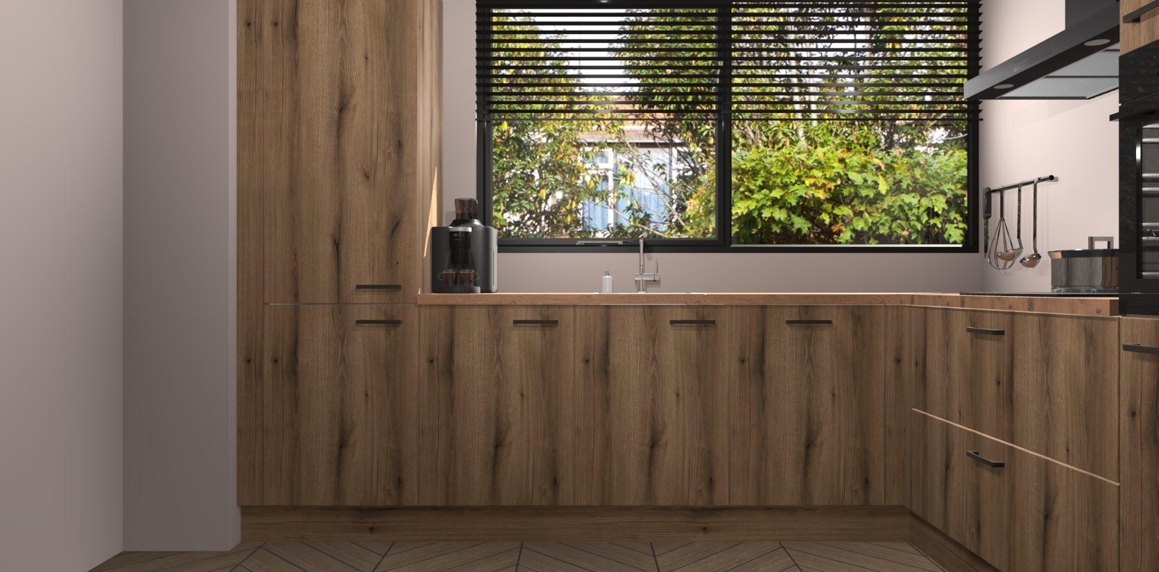Wij presenteren de revolutie in keukens: de goud eiken keuken Vogar. Met modern design, een tijdloos uiterlijk en kasten die al voor gemonteerd worden geleverd, laat deze stijlvolle keuken uw kookervaring op een hele nieuwe manier transformeren.