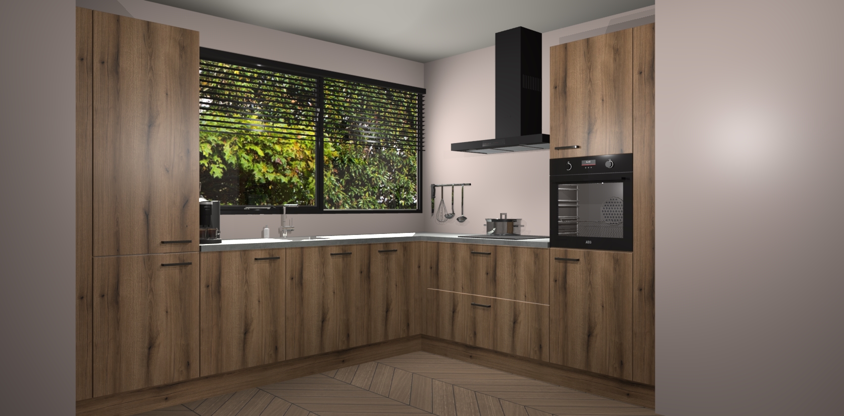 Met een modern, tijdloos design en ruime opslagruimte, zult u zich in no-time thuis voelen in uw nieuwe keuken. Uw leven wordt eenvoudiger met de soft-close deuren die voor het ultieme stille comfort zorgen - geen geluid dat u stoort terwijl u kookt. Ook is de keuken voorzien van 5 ingebouwde apparaten: een oven, inductie kookplaat, afzuigkap, vaatwasser en koelkast. Deze kunnen gemakkelijk na bestelling worden bijgewerkt naar AEG - waardoor uw luxe ervaring compleet is.