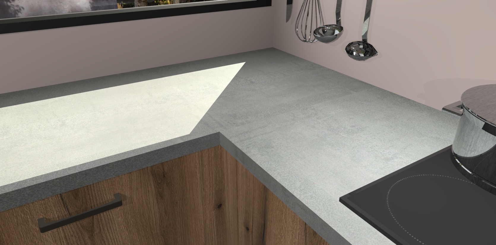 - Bij een hoekwerkblad zijn de hoeken in gevreesd en op maat gemaakt