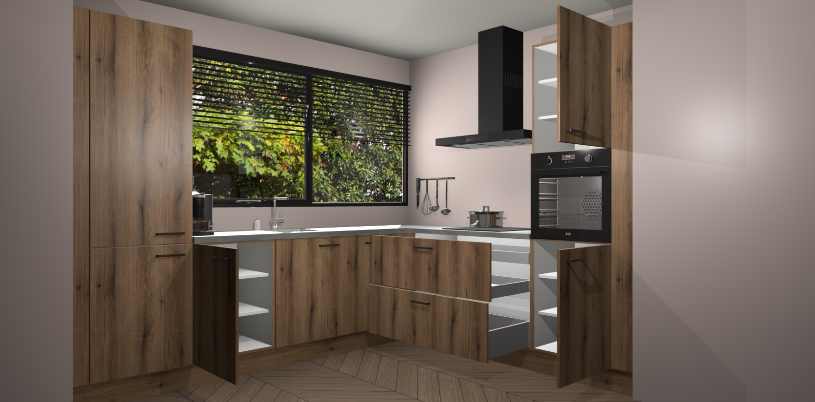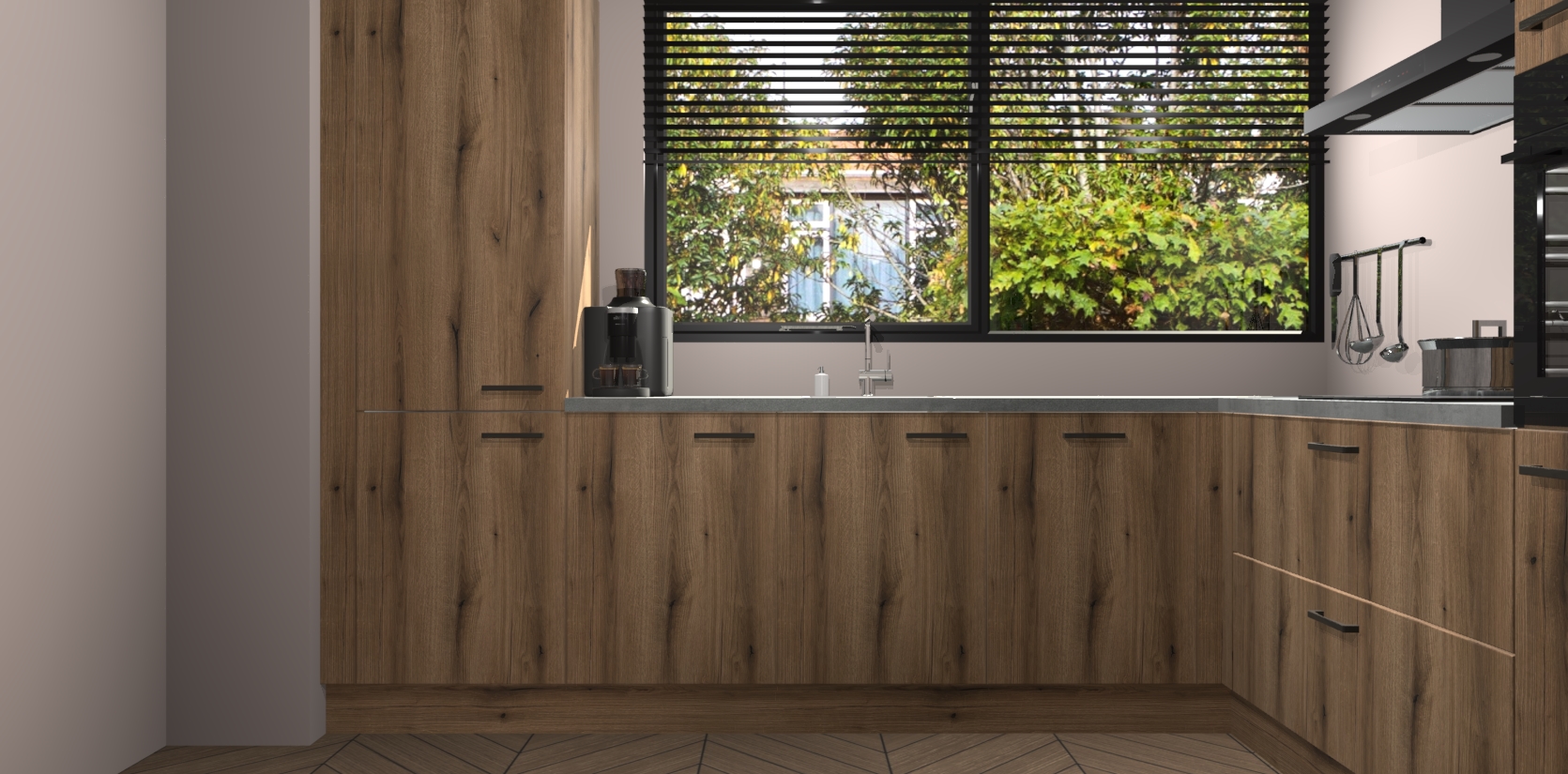 Wij presenteren de revolutie in keukens: de goud eiken keuken Vogar. Met modern design, een tijdloos uiterlijk en kasten die al voor gemonteerd worden geleverd, laat deze stijlvolle keuken uw kookervaring op een hele nieuwe manier transformeren.