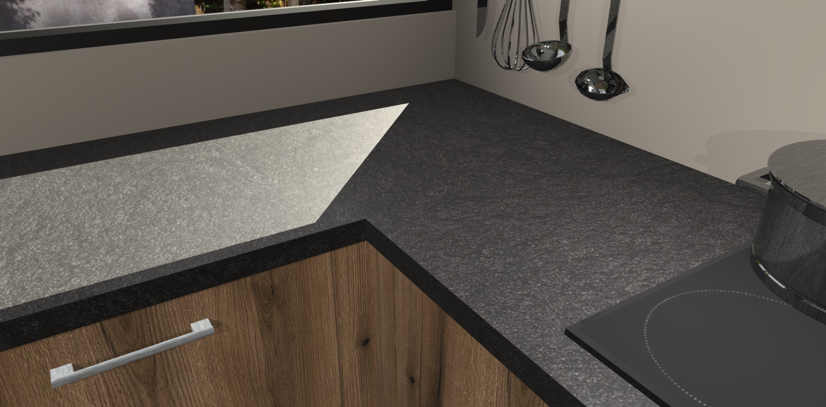 - Bij een hoekwerkblad zijn de hoeken in gevreesd en op maat gemaakt
