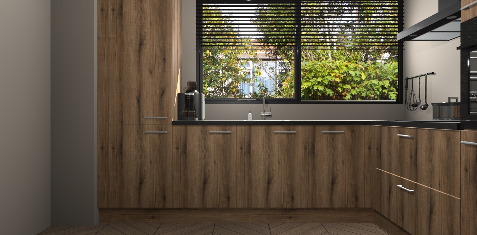 Wij presenteren de revolutie in keukens: de goud eiken keuken Vogar. Met modern design, een tijdloos uiterlijk en kasten die al voor gemonteerd worden geleverd, laat deze stijlvolle keuken uw kookervaring op een hele nieuwe manier transformeren.