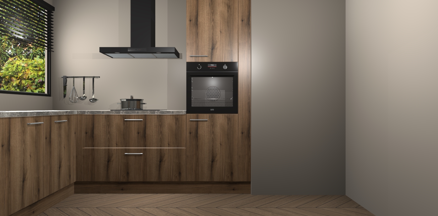 Met een modern, tijdloos design en ruime opslagruimte, zult u zich in no-time thuis voelen in uw nieuwe keuken. Uw leven wordt eenvoudiger met de soft-close deuren die voor het ultieme stille comfort zorgen - geen geluid dat u stoort terwijl u kookt. Ook is de keuken voorzien van 5 ingebouwde apparaten: een oven, inductie kookplaat, afzuigkap, vaatwasser en koelkast. Deze kunnen gemakkelijk na bestelling worden bijgewerkt naar AEG - waardoor uw luxe ervaring compleet is.