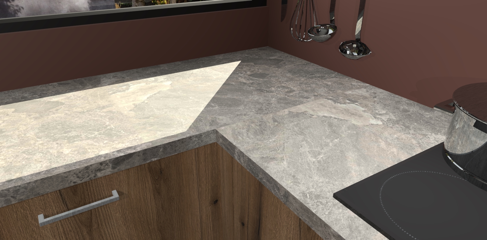- Bij een hoekwerkblad zijn de hoeken in gevreesd en op maat gemaakt