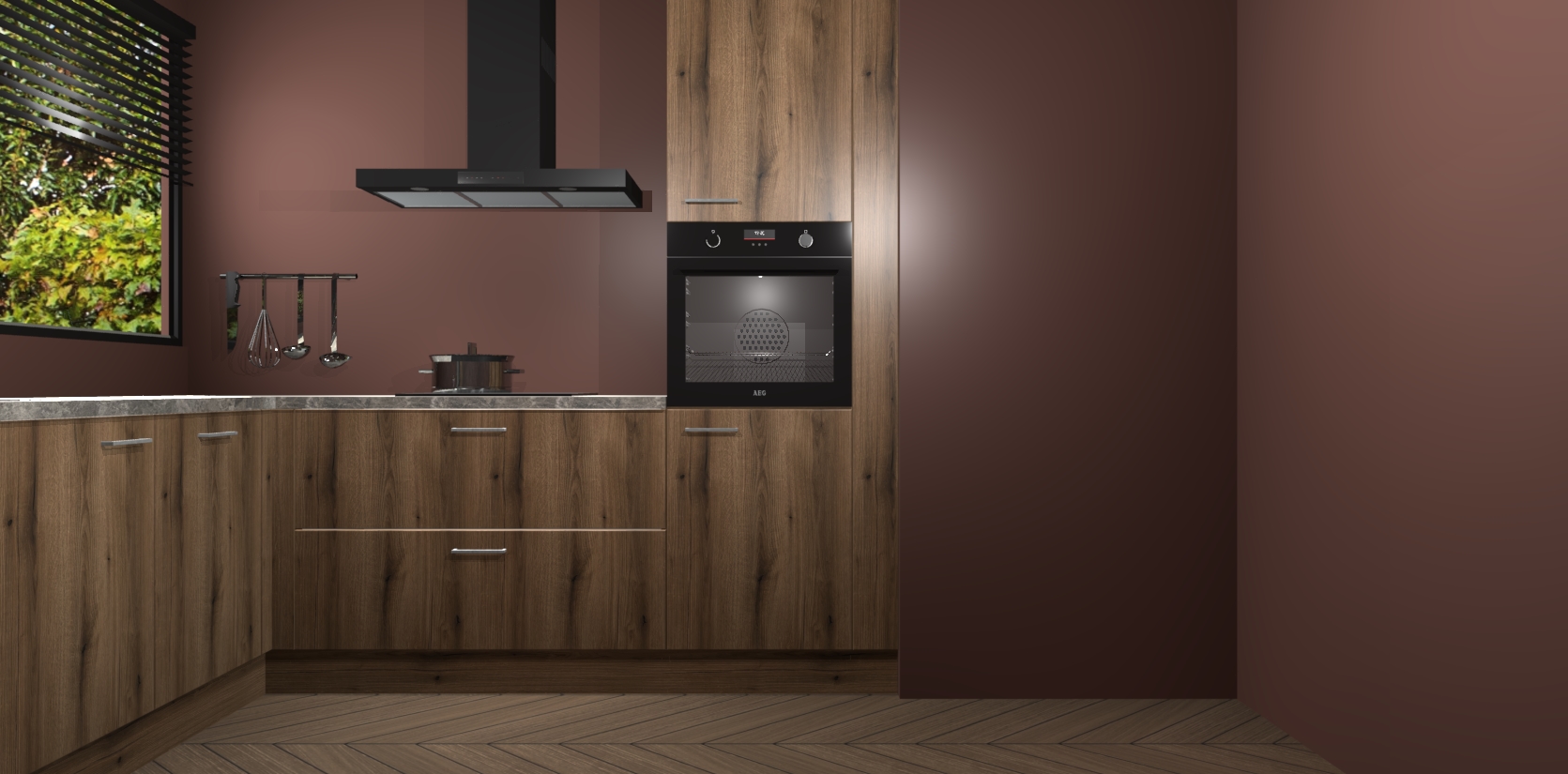 Met een modern, tijdloos design en ruime opslagruimte, zult u zich in no-time thuis voelen in uw nieuwe keuken. Uw leven wordt eenvoudiger met de soft-close deuren die voor het ultieme stille comfort zorgen - geen geluid dat u stoort terwijl u kookt. Ook is de keuken voorzien van 5 ingebouwde apparaten: een oven, inductie kookplaat, afzuigkap, vaatwasser en koelkast. Deze kunnen gemakkelijk na bestelling worden bijgewerkt naar AEG - waardoor uw luxe ervaring compleet is.