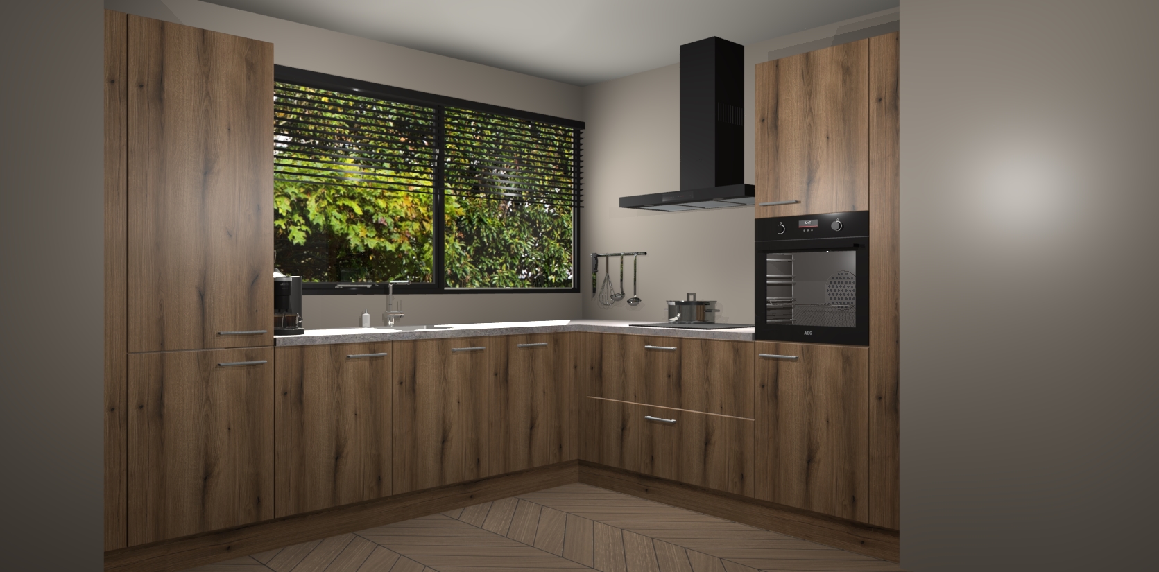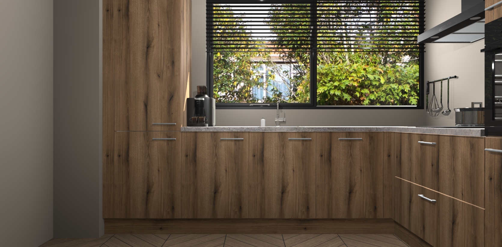 Wij presenteren de revolutie in keukens: de goud eiken keuken Vogar. Met modern design, een tijdloos uiterlijk en kasten die al voor gemonteerd worden geleverd, laat deze stijlvolle keuken uw kookervaring op een hele nieuwe manier transformeren.