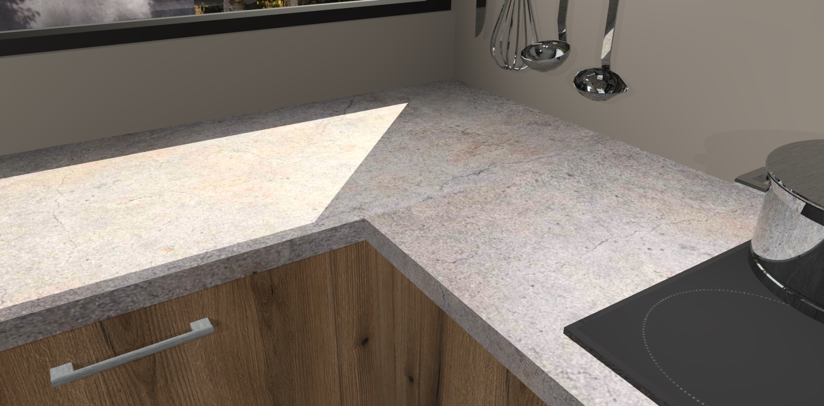 - Bij een hoekwerkblad zijn de hoeken in gevreesd en op maat gemaakt