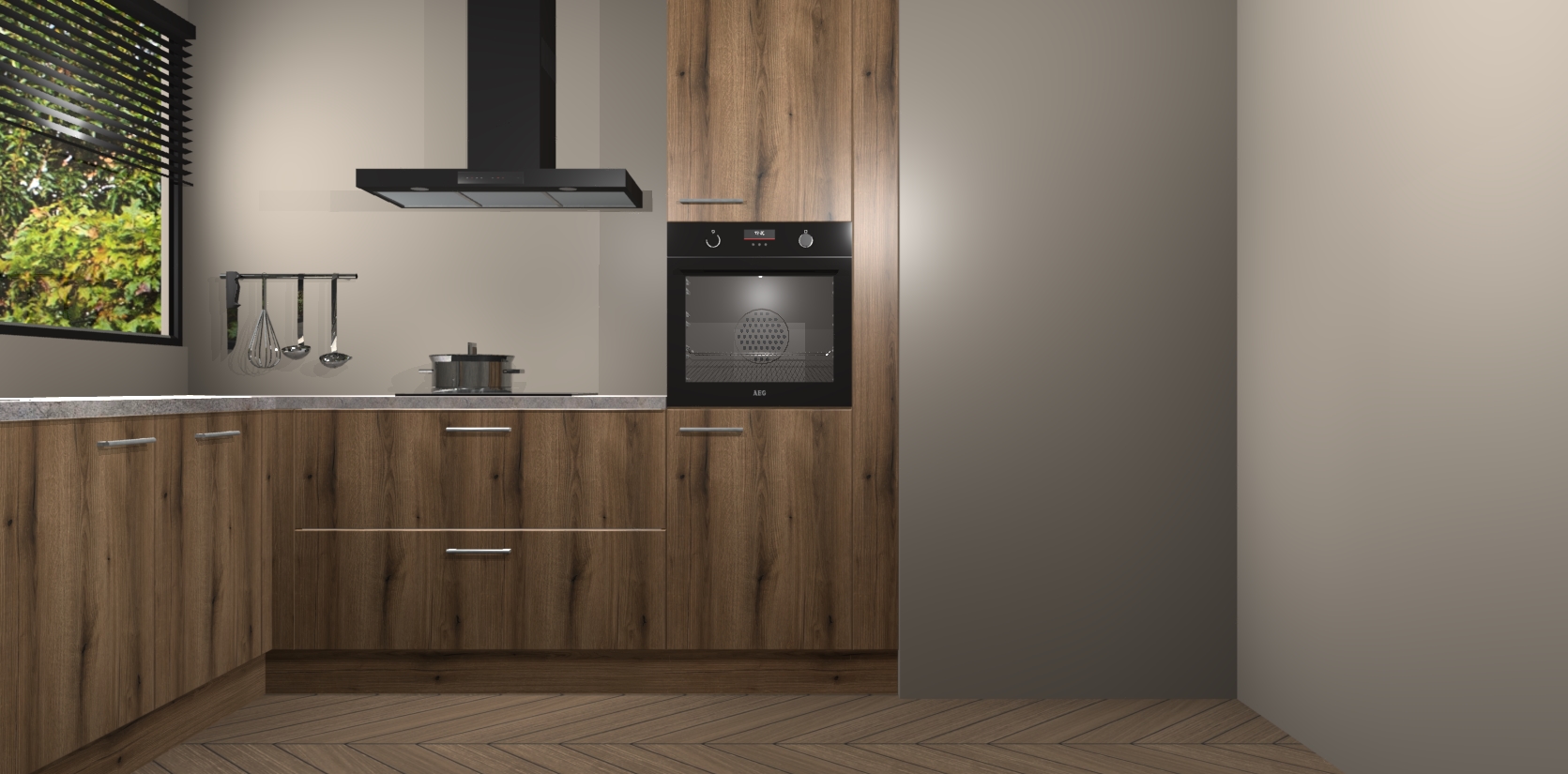 Met een modern, tijdloos design en ruime opslagruimte, zult u zich in no-time thuis voelen in uw nieuwe keuken. Uw leven wordt eenvoudiger met de soft-close deuren die voor het ultieme stille comfort zorgen - geen geluid dat u stoort terwijl u kookt. Ook is de keuken voorzien van 5 ingebouwde apparaten: een oven, inductie kookplaat, afzuigkap, vaatwasser en koelkast. Deze kunnen gemakkelijk na bestelling worden bijgewerkt naar AEG - waardoor uw luxe ervaring compleet is.