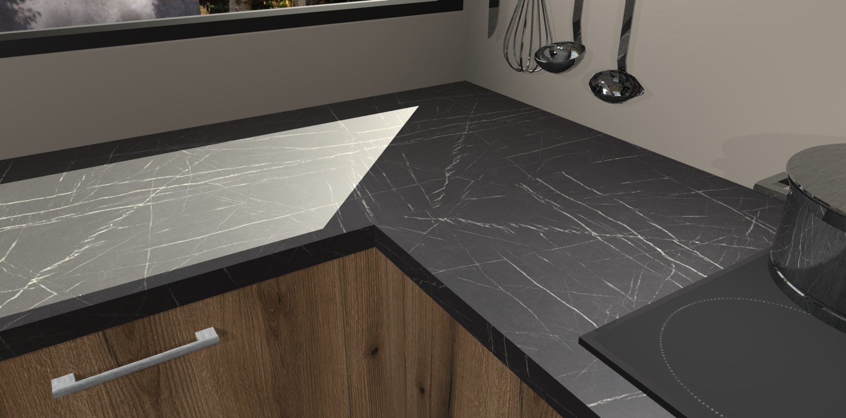 - Bij een hoekwerkblad zijn de hoeken in gevreesd en op maat gemaakt