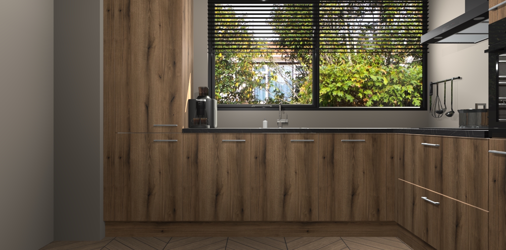 Wij presenteren de revolutie in keukens: de goud eiken keuken Vogar. Met modern design, een tijdloos uiterlijk en kasten die al voor gemonteerd worden geleverd, laat deze stijlvolle keuken uw kookervaring op een hele nieuwe manier transformeren.