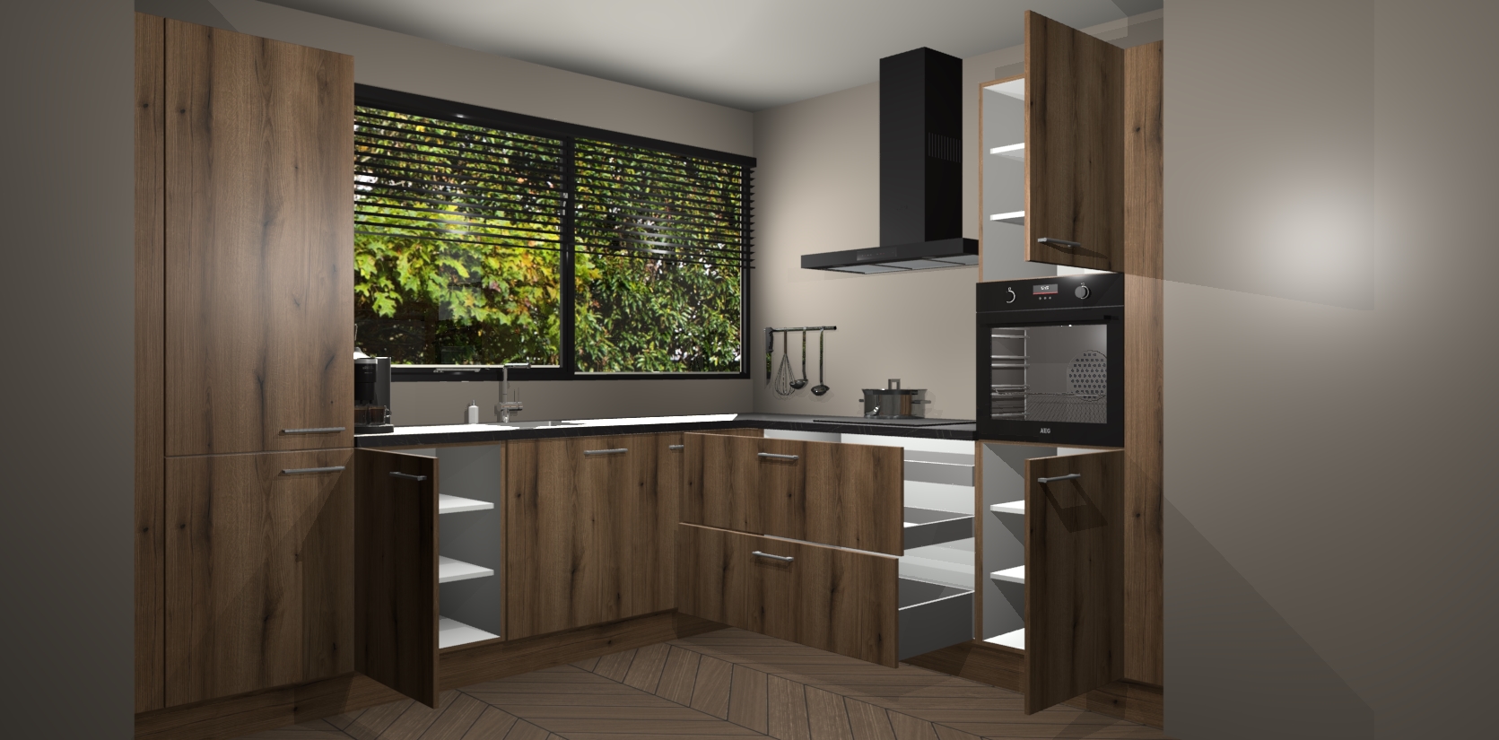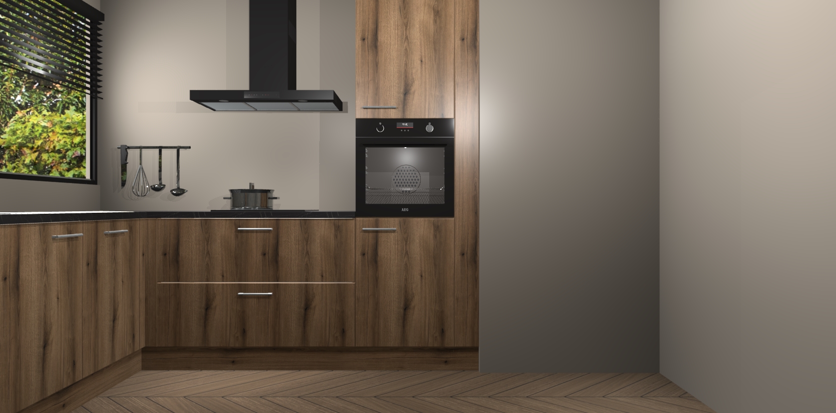 Met een modern, tijdloos design en ruime opslagruimte, zult u zich in no-time thuis voelen in uw nieuwe keuken. Uw leven wordt eenvoudiger met de soft-close deuren die voor het ultieme stille comfort zorgen - geen geluid dat u stoort terwijl u kookt. Ook is de keuken voorzien van 5 ingebouwde apparaten: een oven, inductie kookplaat, afzuigkap, vaatwasser en koelkast. Deze kunnen gemakkelijk na bestelling worden bijgewerkt naar AEG - waardoor uw luxe ervaring compleet is.