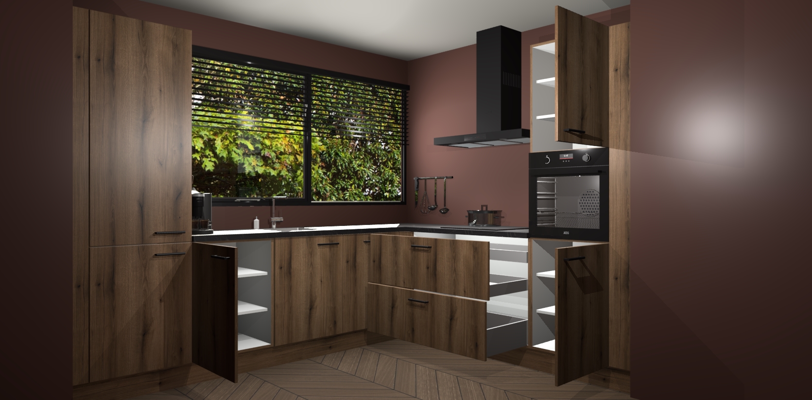 Wij presenteren de revolutie in keukens: de goud eiken keuken Vogar. Met modern design, een tijdloos uiterlijk en kasten die al voor gemonteerd worden geleverd, laat deze stijlvolle keuken uw kookervaring op een hele nieuwe manier transformeren.