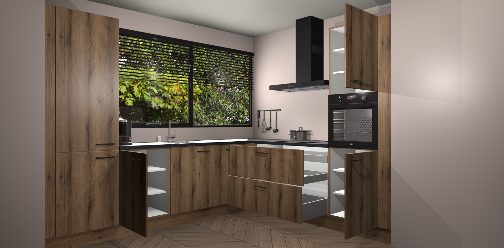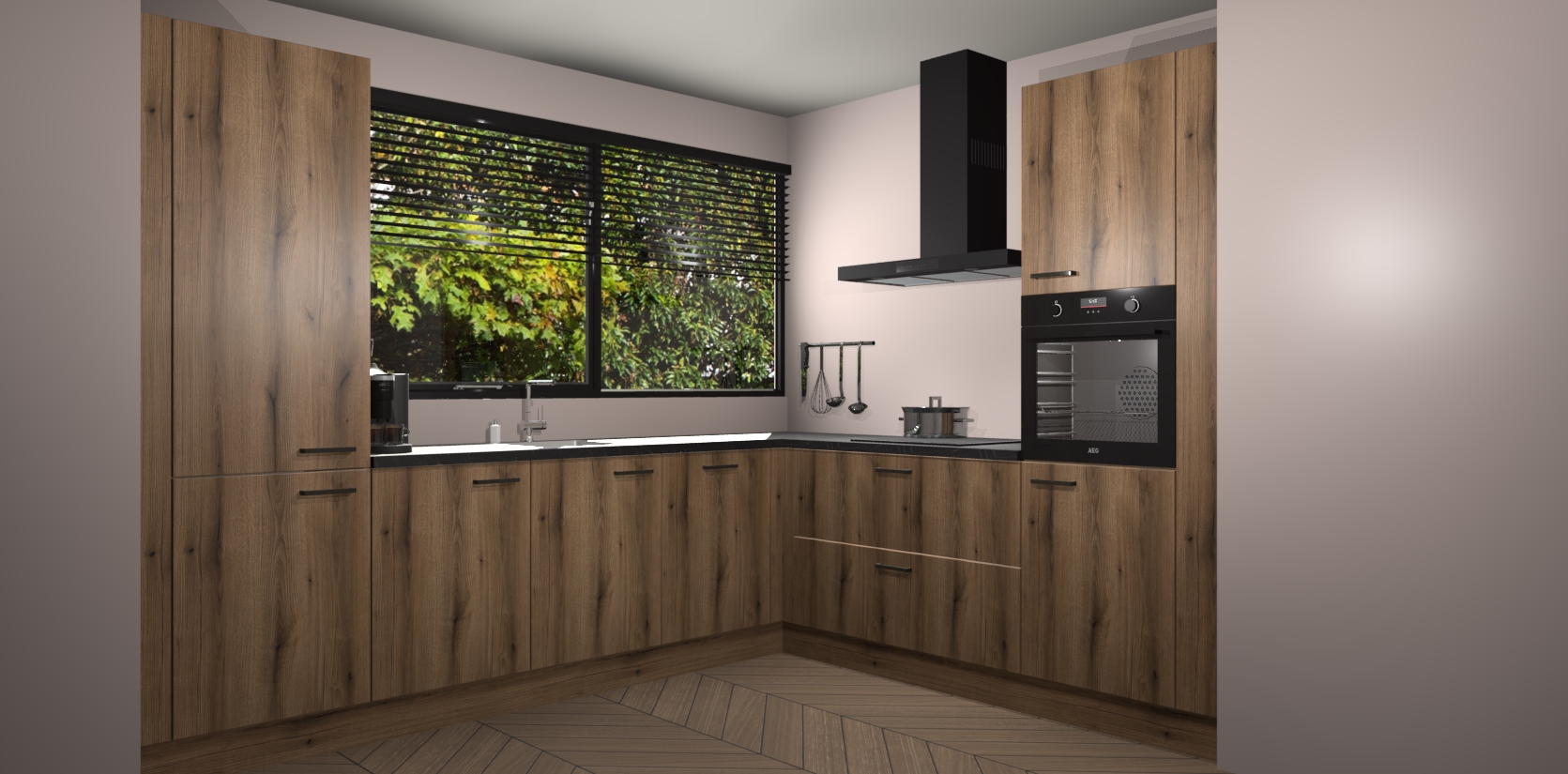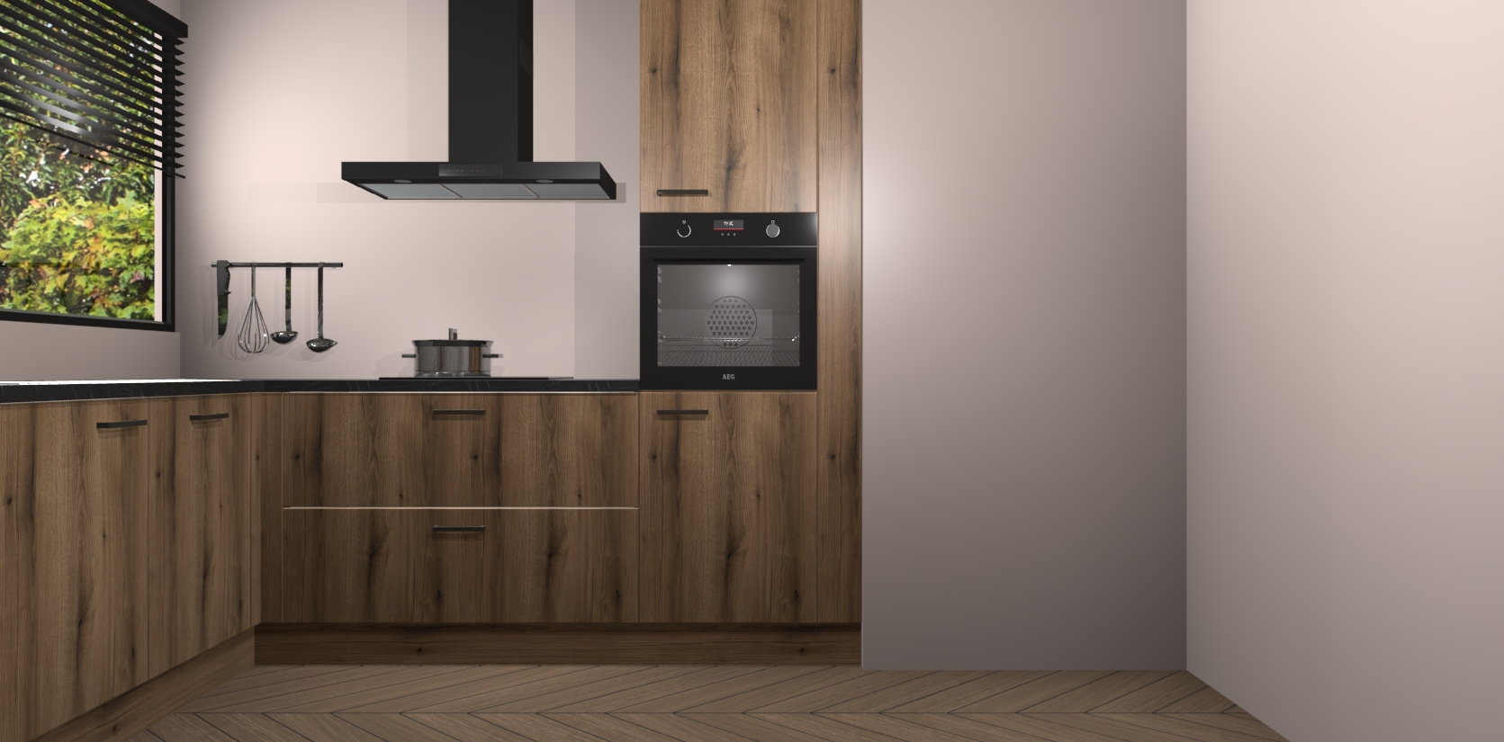 Met een modern, tijdloos design en ruime opslagruimte, zult u zich in no-time thuis voelen in uw nieuwe keuken. Uw leven wordt eenvoudiger met de soft-close deuren die voor het ultieme stille comfort zorgen - geen geluid dat u stoort terwijl u kookt. Ook is de keuken voorzien van 5 ingebouwde apparaten: een oven, inductie kookplaat, afzuigkap, vaatwasser en koelkast. Deze kunnen gemakkelijk na bestelling worden bijgewerkt naar AEG - waardoor uw luxe ervaring compleet is.