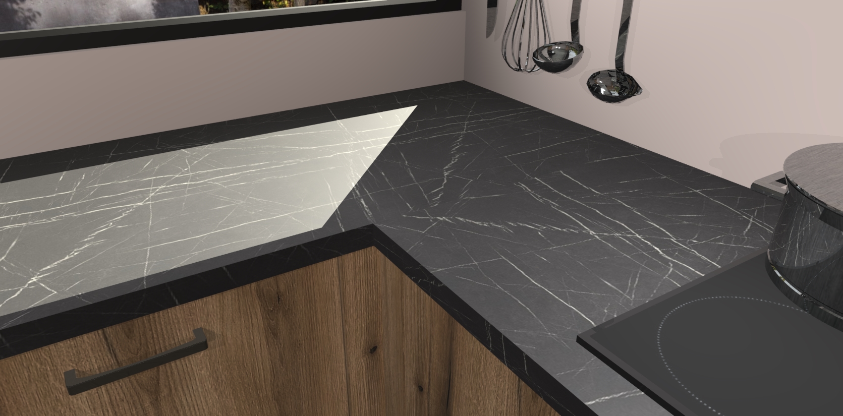 - Bij een hoekwerkblad zijn de hoeken in gevreesd en op maat gemaakt