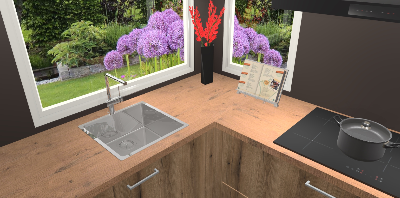 - Bij een hoekwerkblad zijn de hoeken in gevreesd en op maat gemaakt