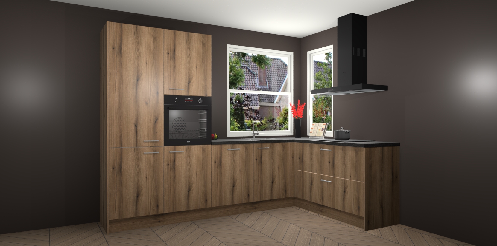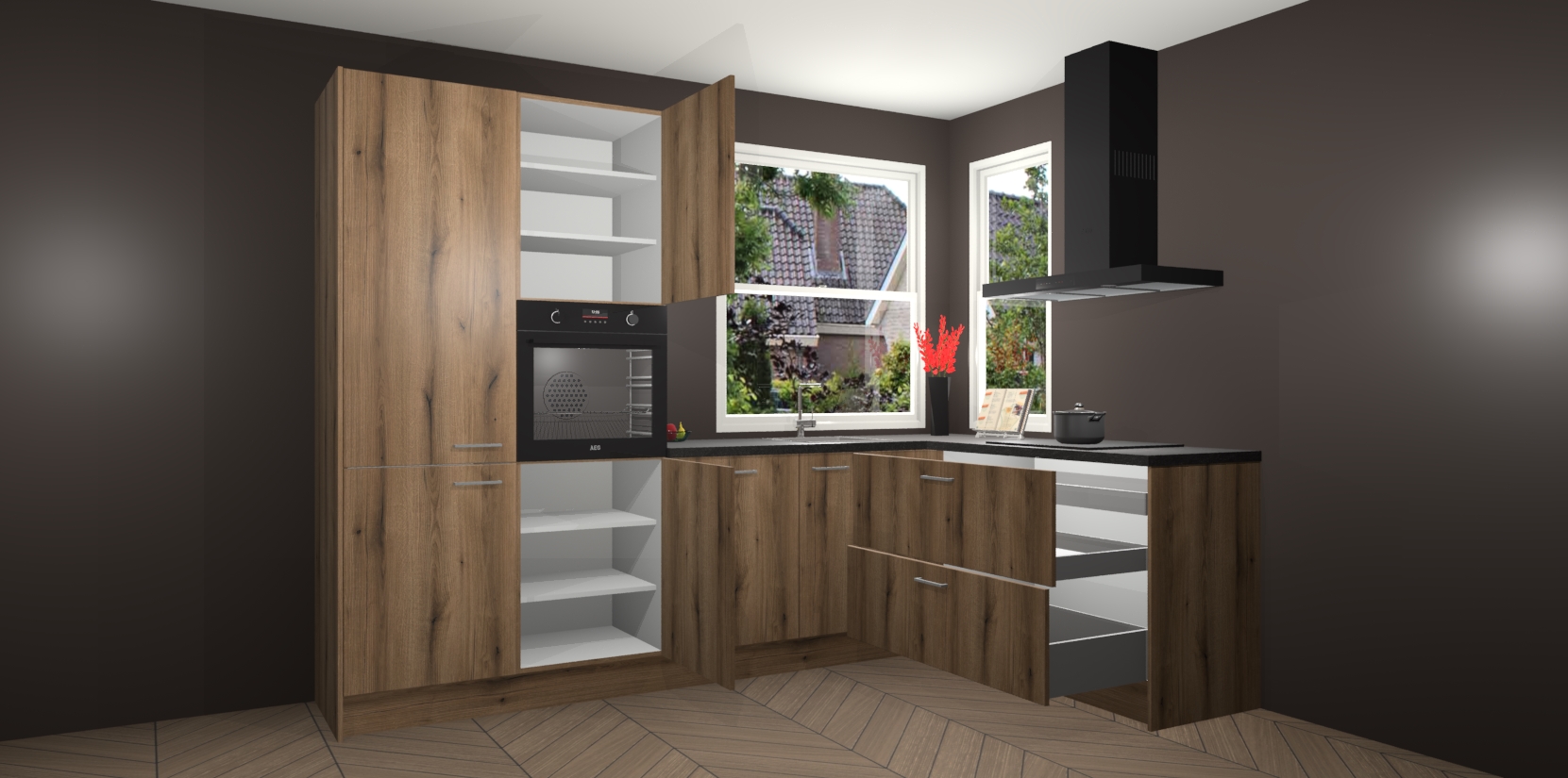 Het is tijd om halsoverkop verliefd te worden op uw droomkeuken, en de Goud Eiken keuken Kotor is precies wat u nodig heeft! Met een moderne, tijdloze constructie en een mix van prachtig design zal deze luxe hoekkeuken zeker opvallen. Maar laat de schoonheid u niet afleiden van de indrukwekkende functies - want onder dit alles schuilt een onovertroffen hoeveelheid lekkers!